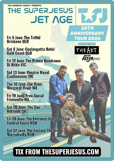 The Superjesus bring their 25 Years Of Jet Age Tour to The River on Thursday, June 18, and Freo.Social on Friday, June 19, 2026. Tickets are on sale now from thesuperjesus.com