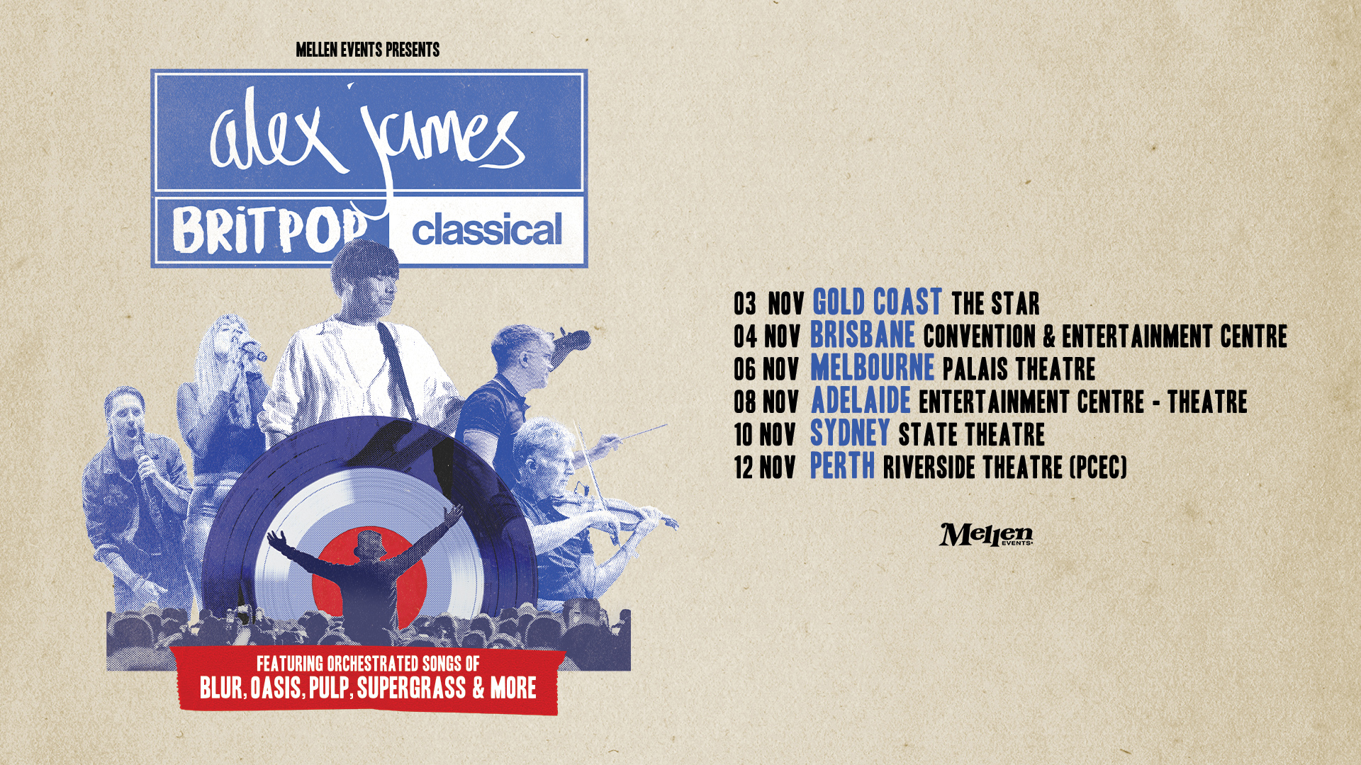 Following a sold-out run of shows across the UK, Blur bassist Alex James is set to bring his Britpop Classical tour to Australia.
