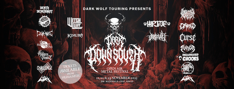 Dark Down South Open Air Festival II hits Jim McDonald Oval in Kirup from Friday, November 21, to Sunday, November 23, 2025. Tickets are on sale now from humanitix.com