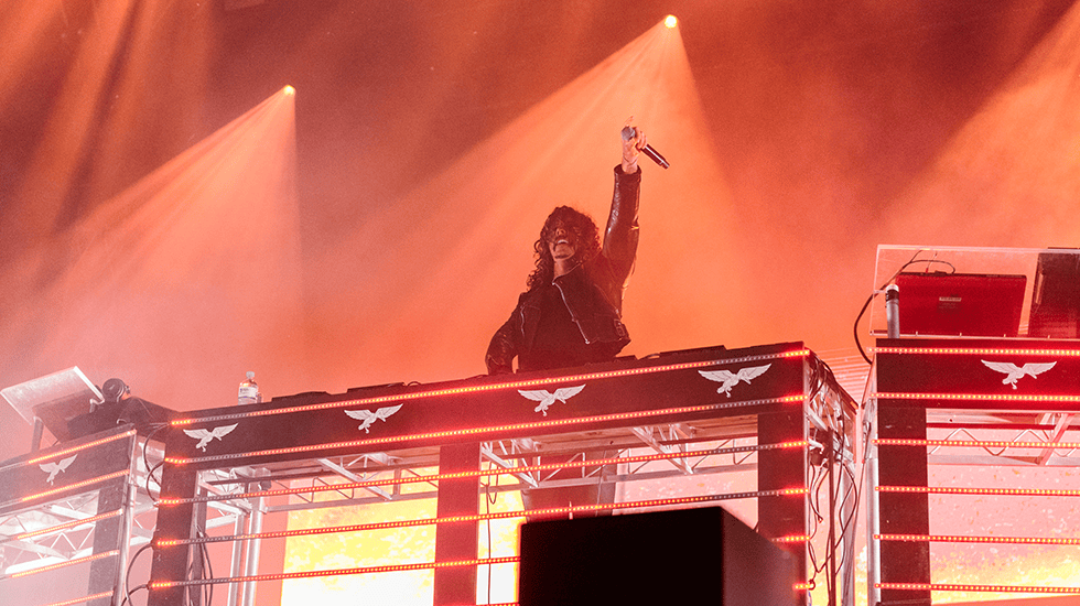 After hosts The Inspired Unemployed brought the anticipation to an all-time high, Peking Duk appeared one man short for their headline set. One half of the duo, Adam Hyde, brought the energy with set opener Fire, which showcased some real fire in the way of pyrotechnics, before explaining his other half, Reuben’s, absence. Lucy Lucy was on vocals duty for the night, but the real vocal tracks from the recorded versions of the songs played loudly over the top obscuring the sound of her live vocals.