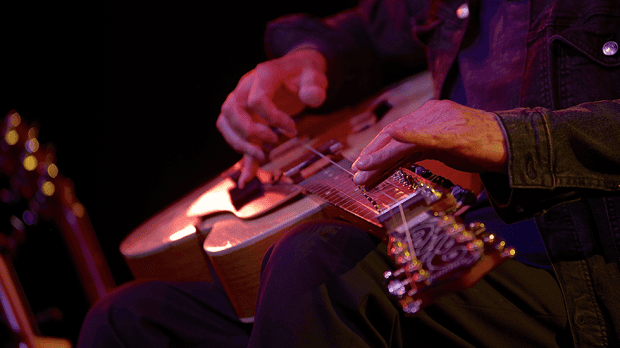 Quick switch to a standard lap-steel guitar, which would prove to be his main axe for the night, and we were treated to down-tempo Junior Kimbrough on the Ganges, for Manx’s tune Let It Go…and then a rapid-fire delivery of biblical and Shakespearean maxims that set the hawk and the dove free to circle and roam.