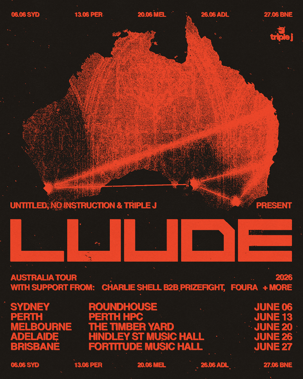 Presented by Untitled Group, triple j, and Luude’s own label, No Instruction, the tour features a stacked all-Australian support lineup with PRIZEFIGHT B2B Charlie Shell alongside Foura.