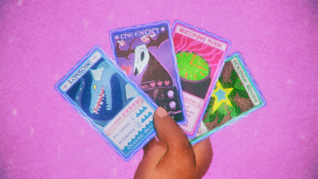 My love of art meant that I regularly drew. I loved creating creatures and monsters—one of these creatures actually is featured in the film, on one of the fictional trading cards—I smile thinking about what my younger self might think, that his designs are a part of a short film that has screened at a festival like Flickerfest. The style of the characters is inspired by the mediums I drew in throughout childhood.