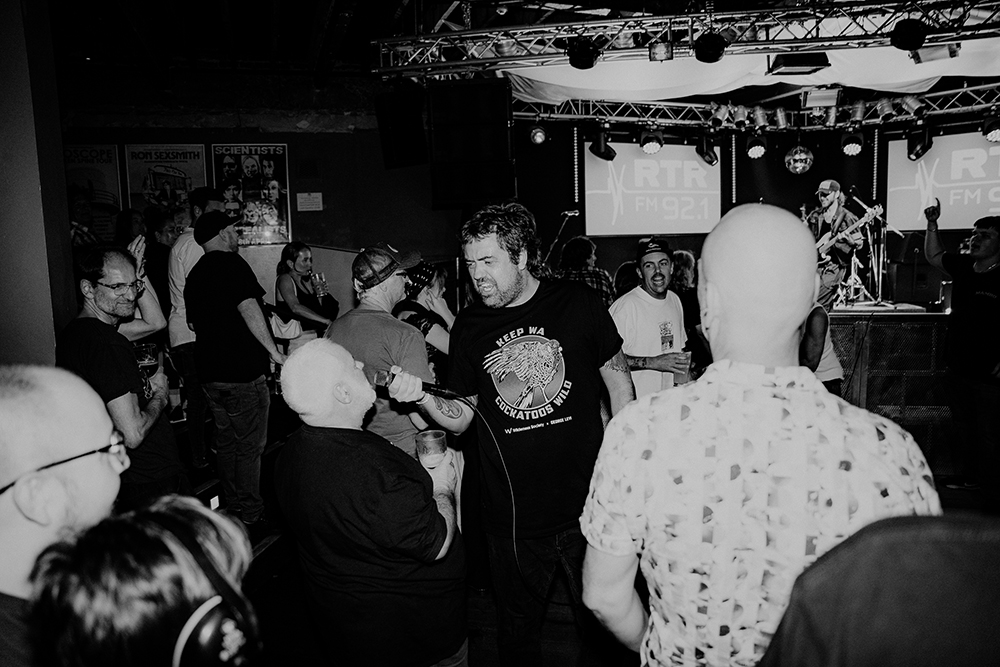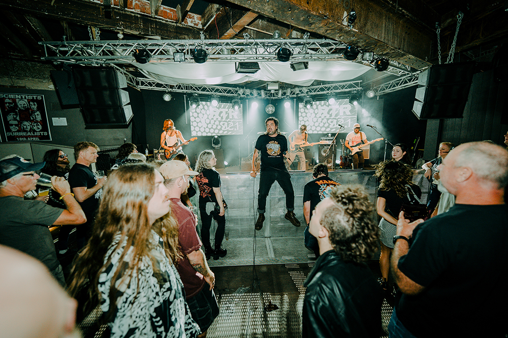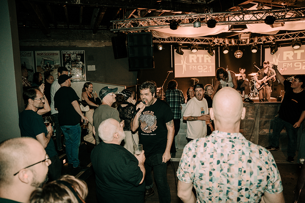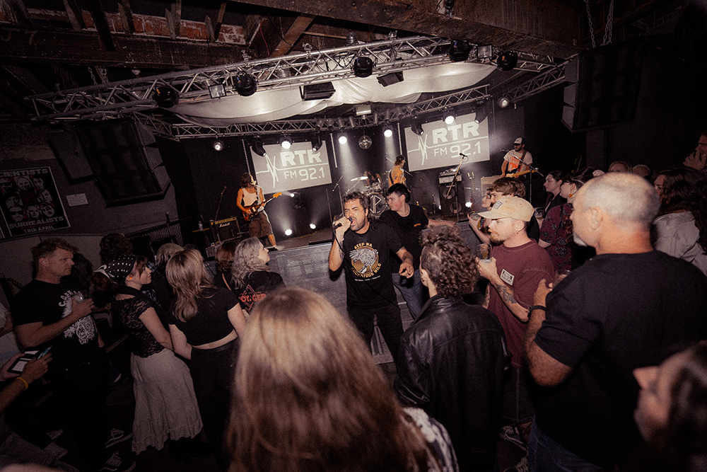 The evening unfolded deliberately. RTRFM’s drive-time DJs warmed the room first, followed by an early set from Nici of Lonesome Dove for the committed punters filtering in. It was a generous, informal start—but the teeth didn’t really sink in until Nigella Screaming hit the stage. A relatively new duo, they worked the room with restraint rather than the squall their name might otherwise suggest.