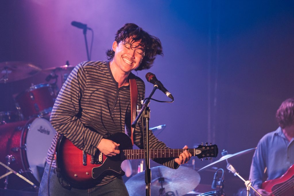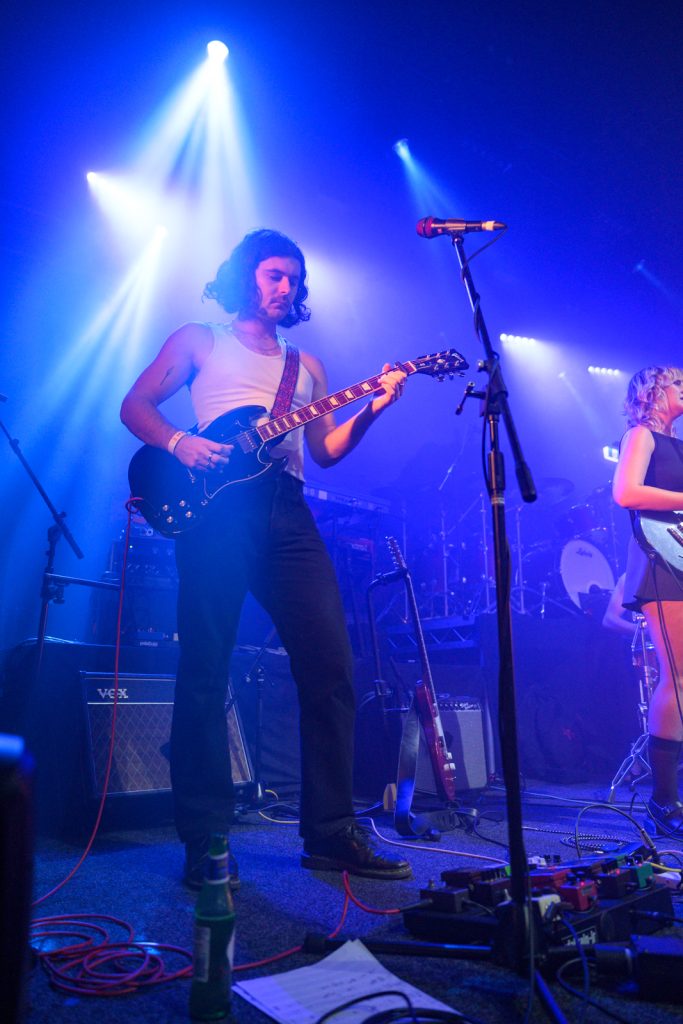 The trio’s chemistry was a highlight with the drummer providing backing vocals, the bassist anchored each song with precision, and the frontman carrying a loose but engaging stage presence. Tracks like Fire and recent single Peace Up had the audience bopping along. A quirky dedication to the character Carly from The Inbetweeners incited the crowd chant of “they eat it up so well” which added levity.