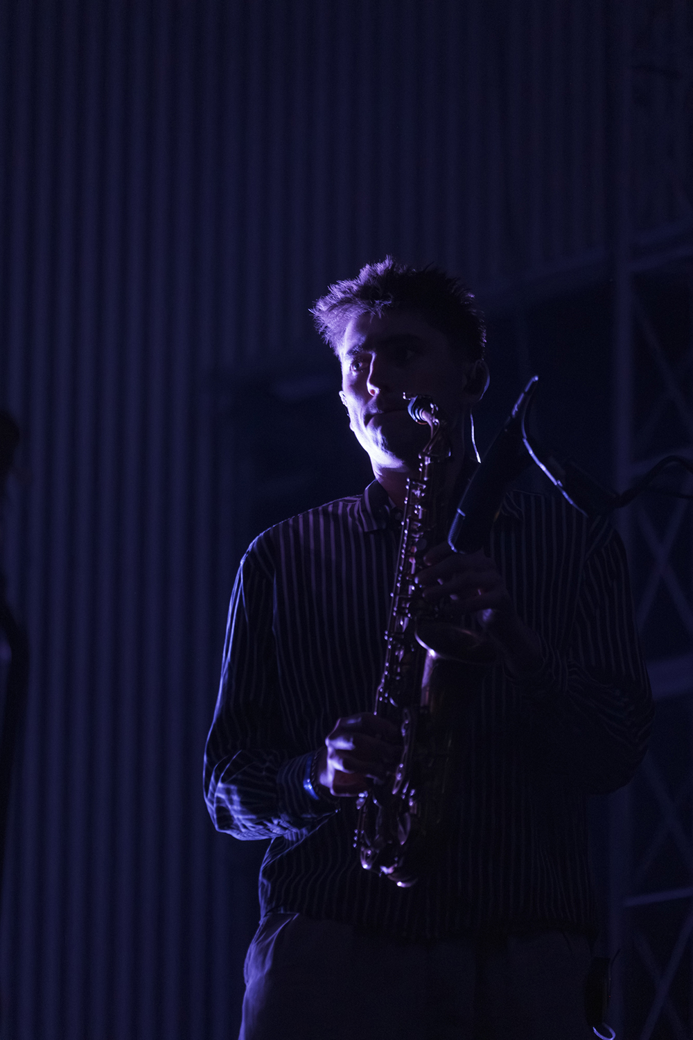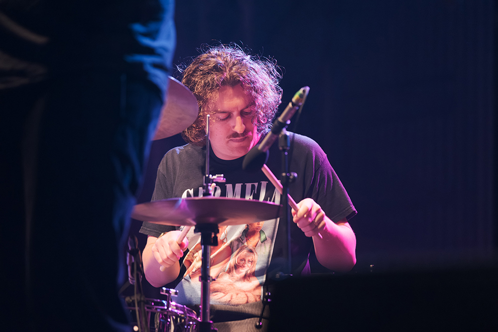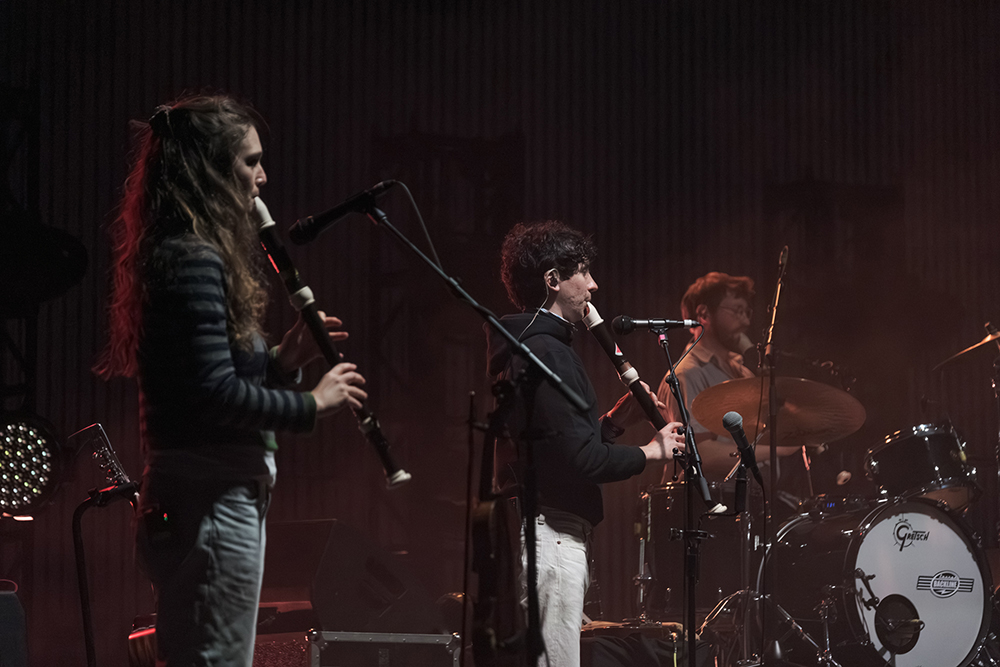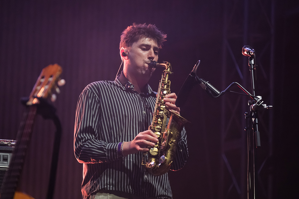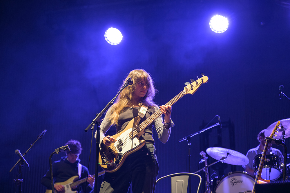 Black Country, New Road began their set gently with Two Horses, a haunting opening that introduced the mellow beauty of saxophonist Lewis Evans and the vocals of Georgia Ellery, which slid throughout the night between playful and melancholic. The song shifted halfway through into a galloping western mode, signalling to the audience early on never to get too comfortable. Next in the set was The Big Spin, a more straightforwardly melodic number led by keyboardist May Ellery, whose vocals felt like the emotional heart of the band. Moving on to Socks, which featured lead vocals by guitar and bass player Tyler Hyde and introduced Ellery’s violin to the mix, the opening trio served as a sampling of what was to come and a signal that there is no one leader or set combination of instruments in this band.