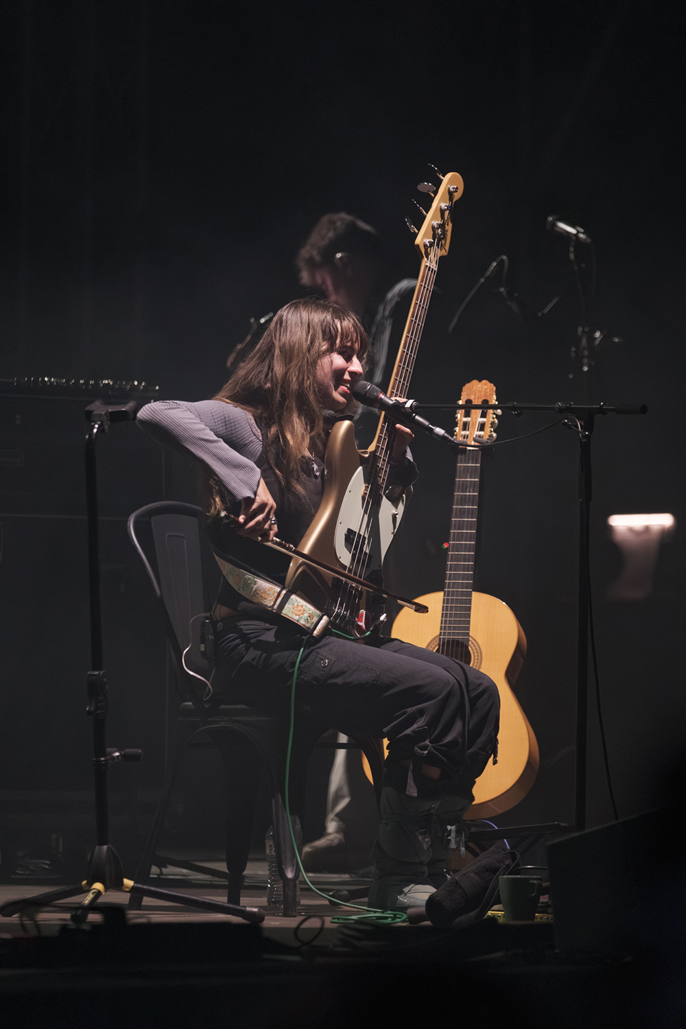 The three female vocalists in the recorded album Forever Howlong sound so similar that it is not always apparent who is singing or even when one singer takes over from the other. Live on stage, however, it became clear that this flattening of difference in the studio must have been a deliberate choice, because each woman showed quite distinct vocal qualities. Ellery’s voice was the lightest and most joyous, particularly on the lead single Besties, which was a highlight of the night. Hyde’s voice often felt cautionary, like a narrator for the stories being told through the music, particularly in songs like Nancy Tries to Take the Night. Kershaw had the darkest quality to her voice, and on the songs where she took lead vocals, she felt more like a frontwoman than the other two, commanding attention even from a seated position behind the keyboard.