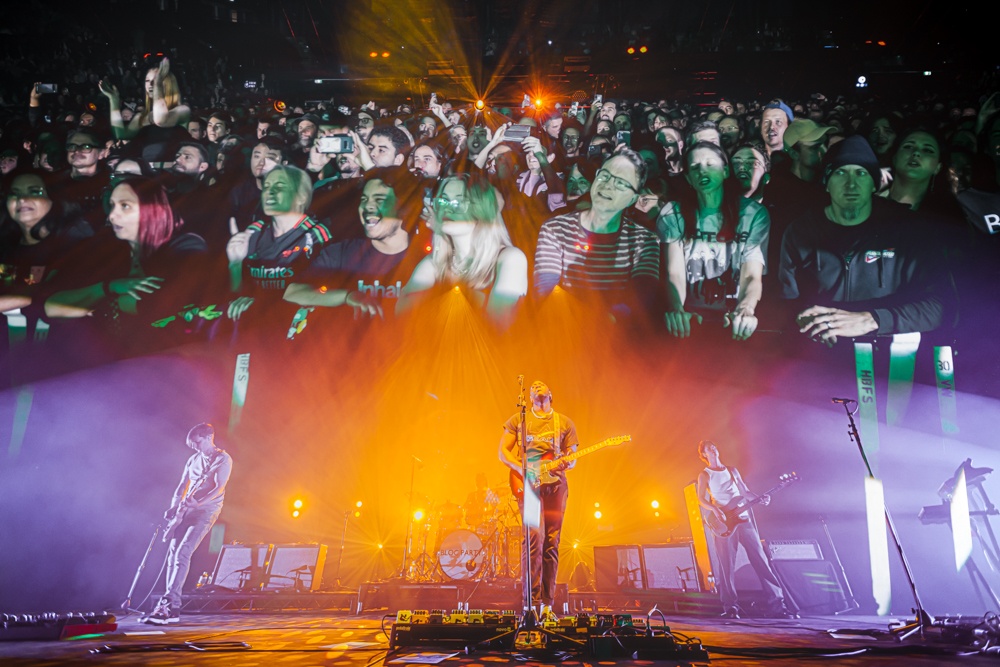 So far so good… But things were about to lift. With a snippet of Sneaker Pimps’ Spin Spin Sugar replacing its usual intro, Song for Clay (Disappear Here) roared to life around the venue, bringing the lighting rig to life in an insane display. Capitalising on the moment by segueing directly into Banquet, it was the night’s most electric moment.