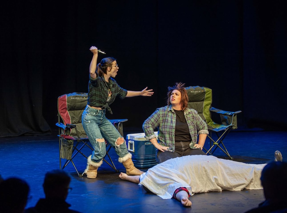 Rhys Hyatt played Macca with a goofy ease, a man who knew he was not the smartest person in the room and was more than happy to be led by others’ suggestions. Towards the latter acts, surrounded and challenged by the rest of the sports committee, Hyatt displayed a convincing performative anger to such an extent that, during the climactic fight with Macduff, he busted a plugger that flew slowly, gracefully, even poetically into the crowd.