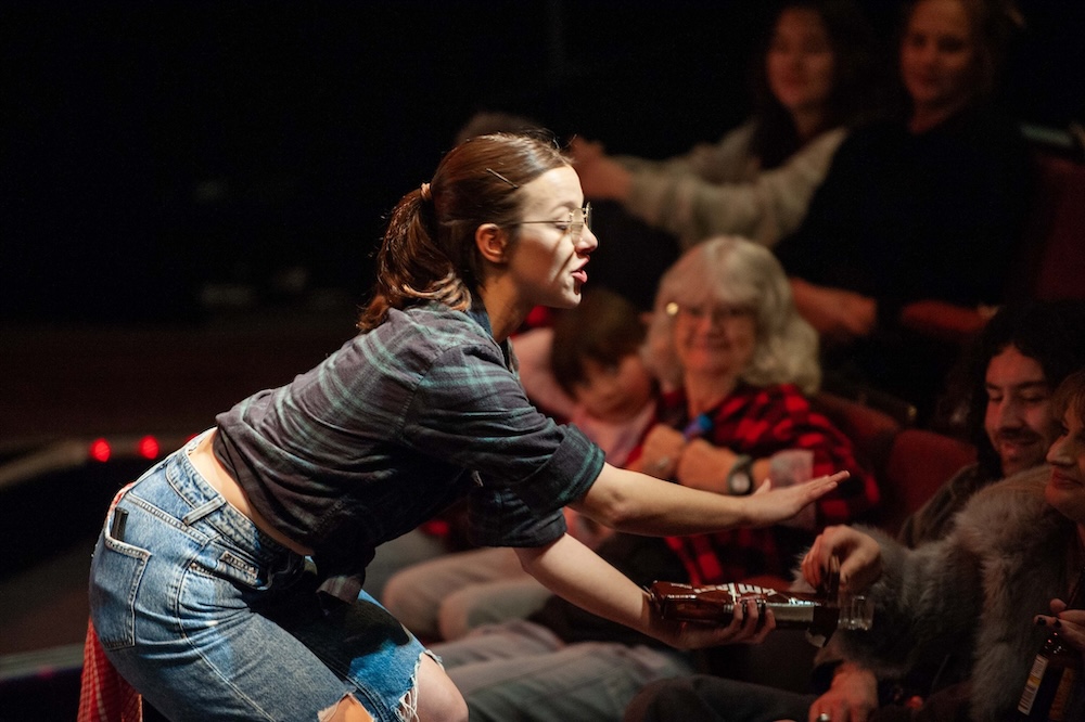 Dean Lovatt gave Duncan an accent that was an unholy mix of Matt Berry via Sir Patrick Stewart, continuing to commit to it until the character’s food allergies met multiple stab wounds. Almost immediately thereafter, Lovatt was back on stage as an investigating police officer, the line readings of CSI: Miami combined with the pitch-black ridiculousness of Heathers.