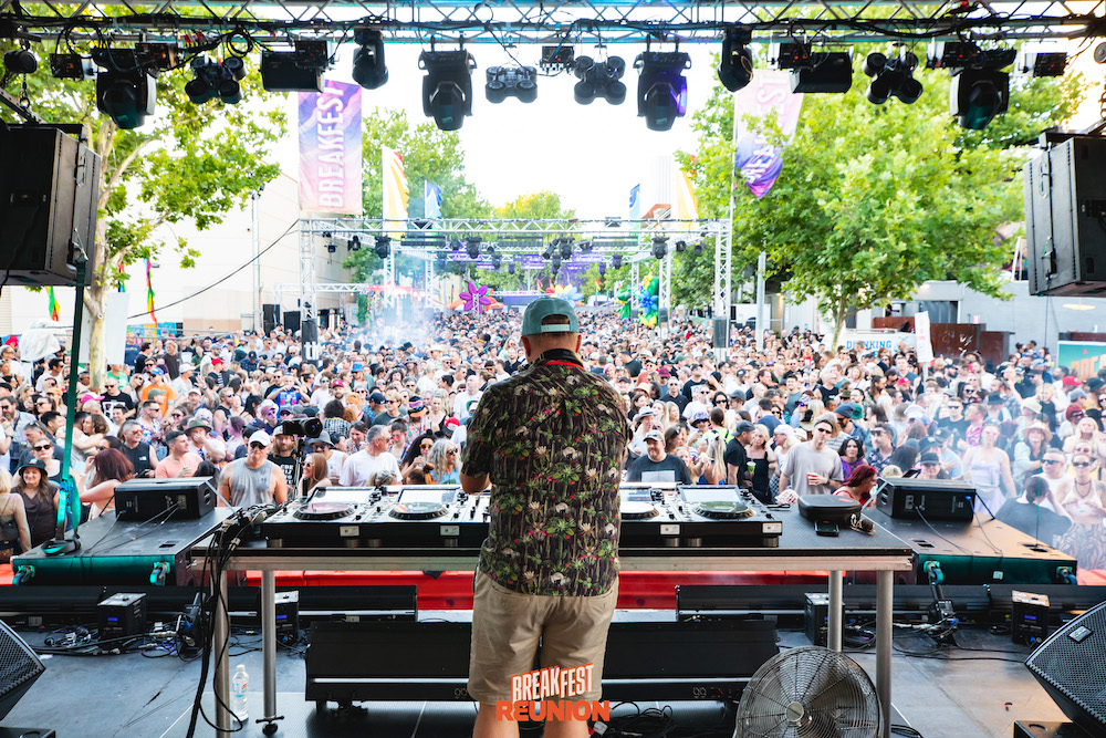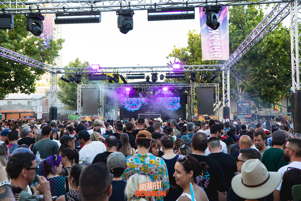 The legend of Breakfest returns! Since the sad demise of the legendary Perth festival that took over Belvoir Amphitheatre every Boxing Day for twenty years, there’s been a hole in the hearts of the Perth breaks scene. After the festival’s last hurrah in 2022, promoters Boomtick have kept the vibe alive by putting on a few breakbeat-focused events around town, such as their One More Time parties, but this year’s Breakfest Reunion block party was the biggest and best yet! It really captured the festival vibe of old and was the closest to conjuring that special magic that made Breakfest the ‘best day ever’.