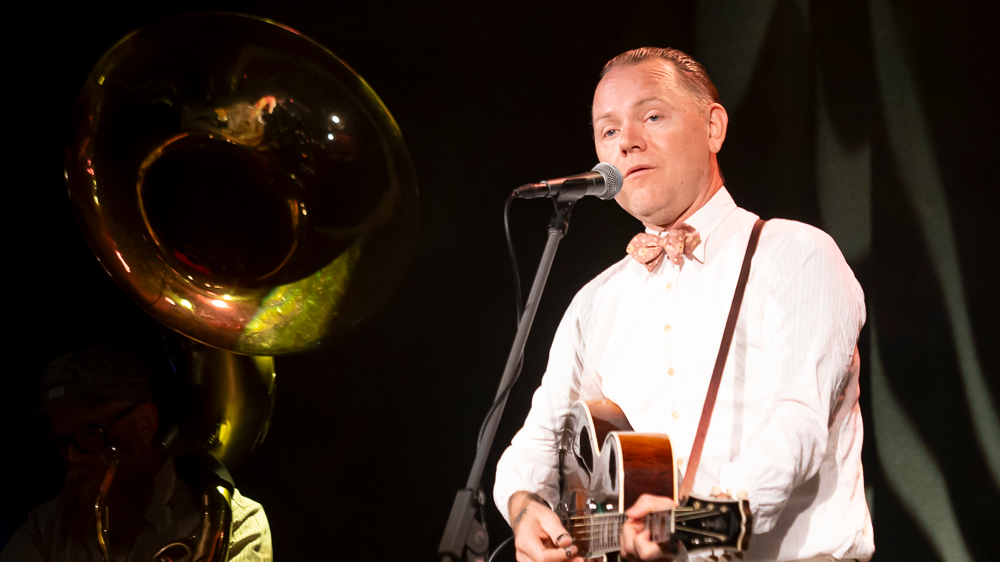 Stoneking then announced we were into the Caribbean segment of the show; his right hand strummed the opening chord of The Thing I Done, a rollicking toe-tapper that would feel at home in a ragtime speakeasy, before wafting straight into other rum-drenched ballads off his Gon’ Boogaloo record, Mumma Got the Blues and On a Desert Isle. The stage and performance set the scene of a leisurely steamboat drift down a jungle river on the African Queen, with Stoneking playing the role of Humphrey Bogart.