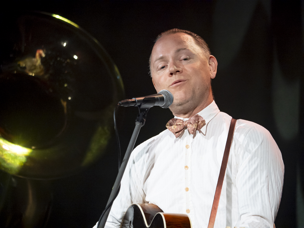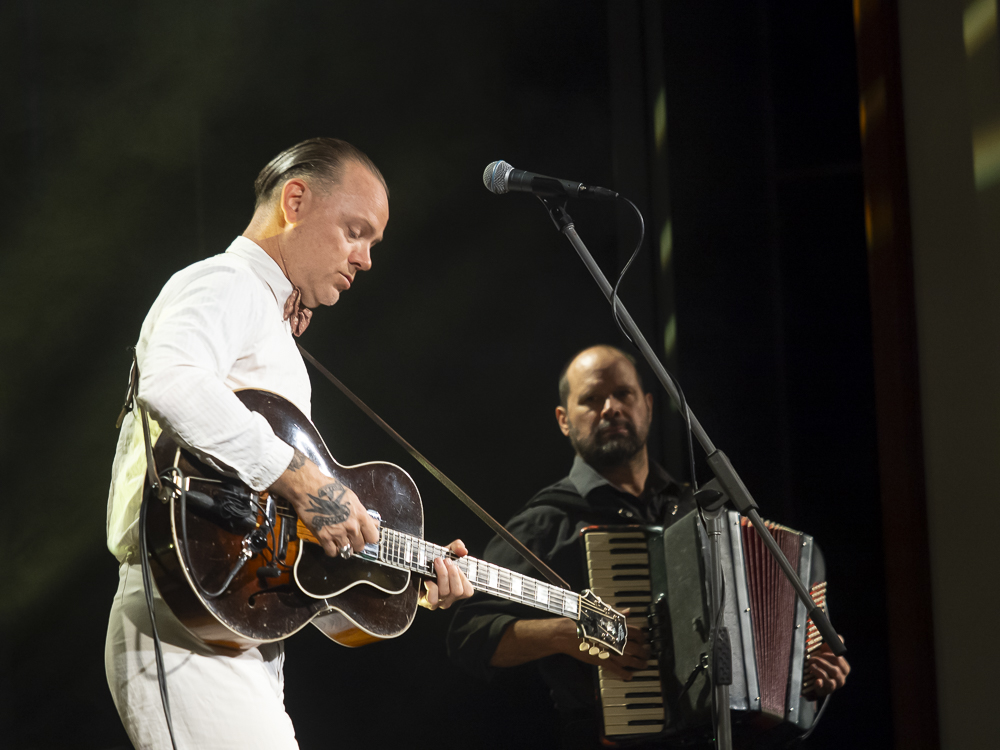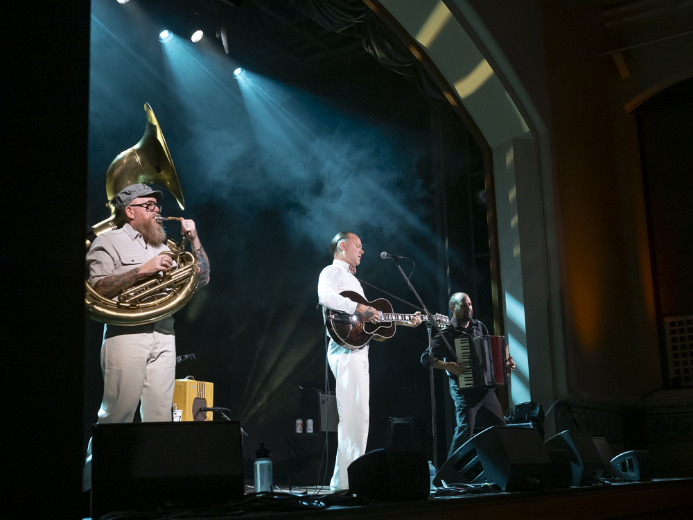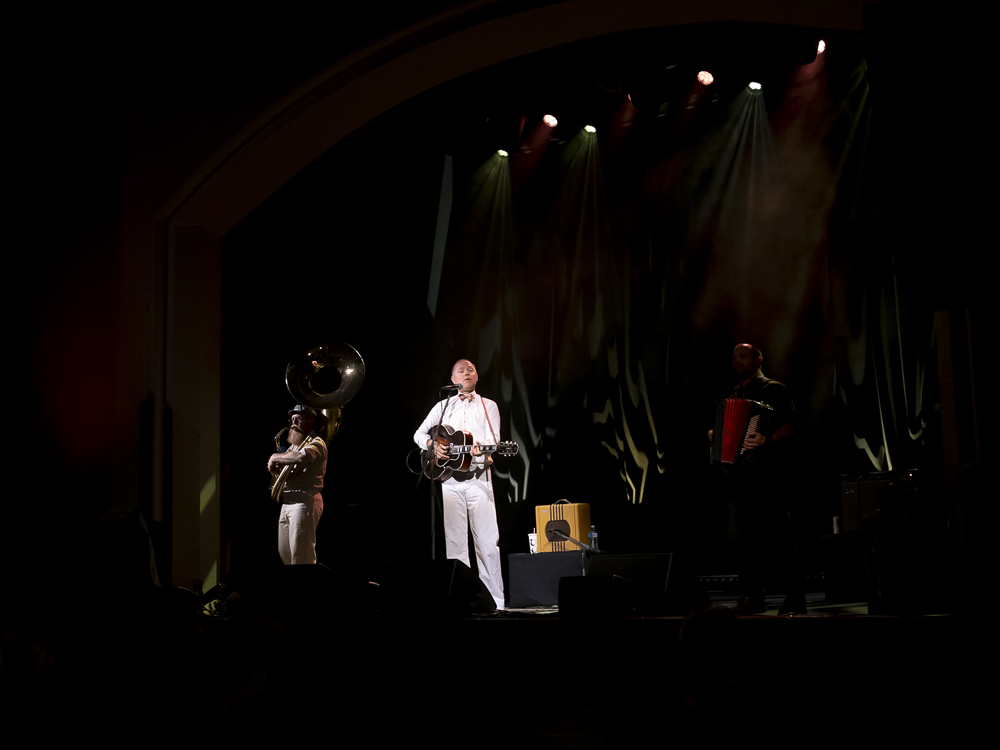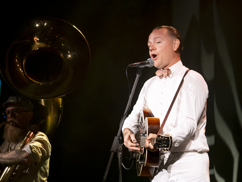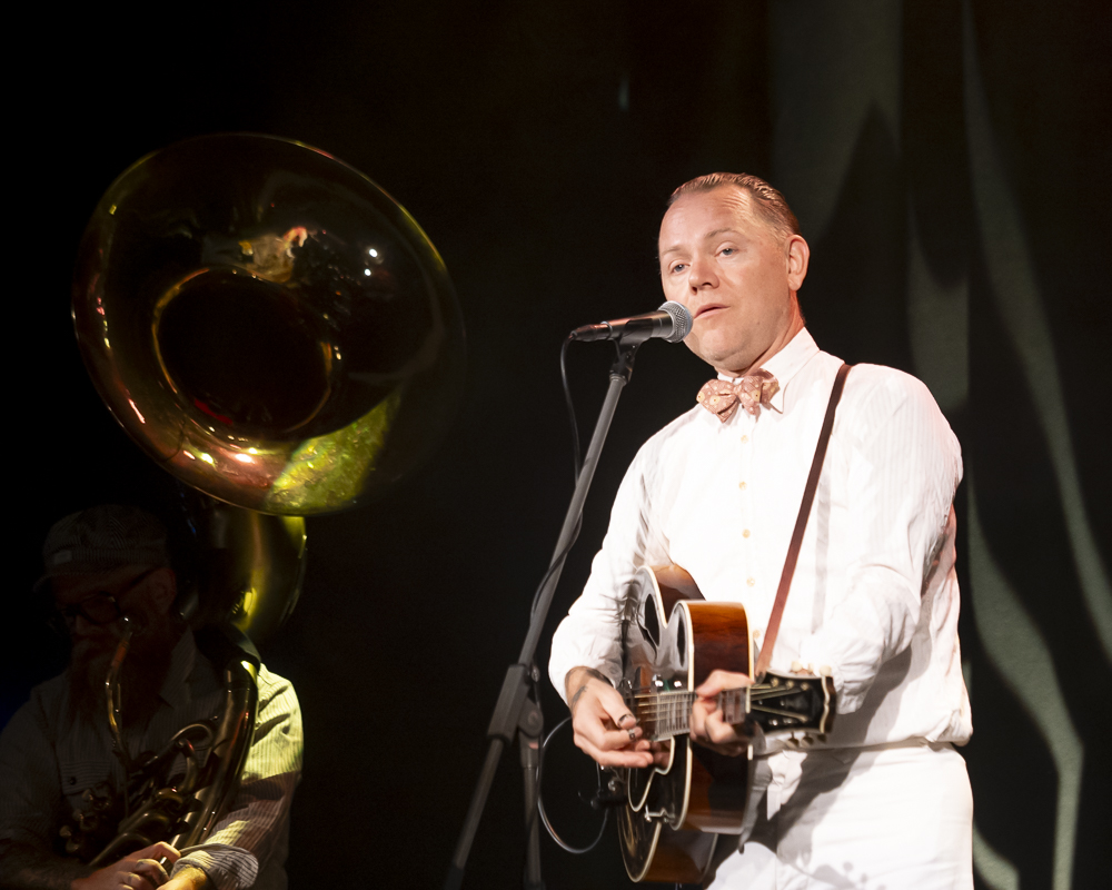 Stoneking arrived on the stage like he’d just stepped off a freight train carrying nothing but a guitar and a suitcase full of mysteries, looking temporarily displaced, like a riverboat gambler from a sepia photograph brought to life. He embraced the sold-out room with a simple “howdy” and modestly backed with a two-piece ensemble of Stephen Grant on accordion and Phil Stack (Phillbilly J) pounding out the low end for the hour-long set on an imposingly large tuba.