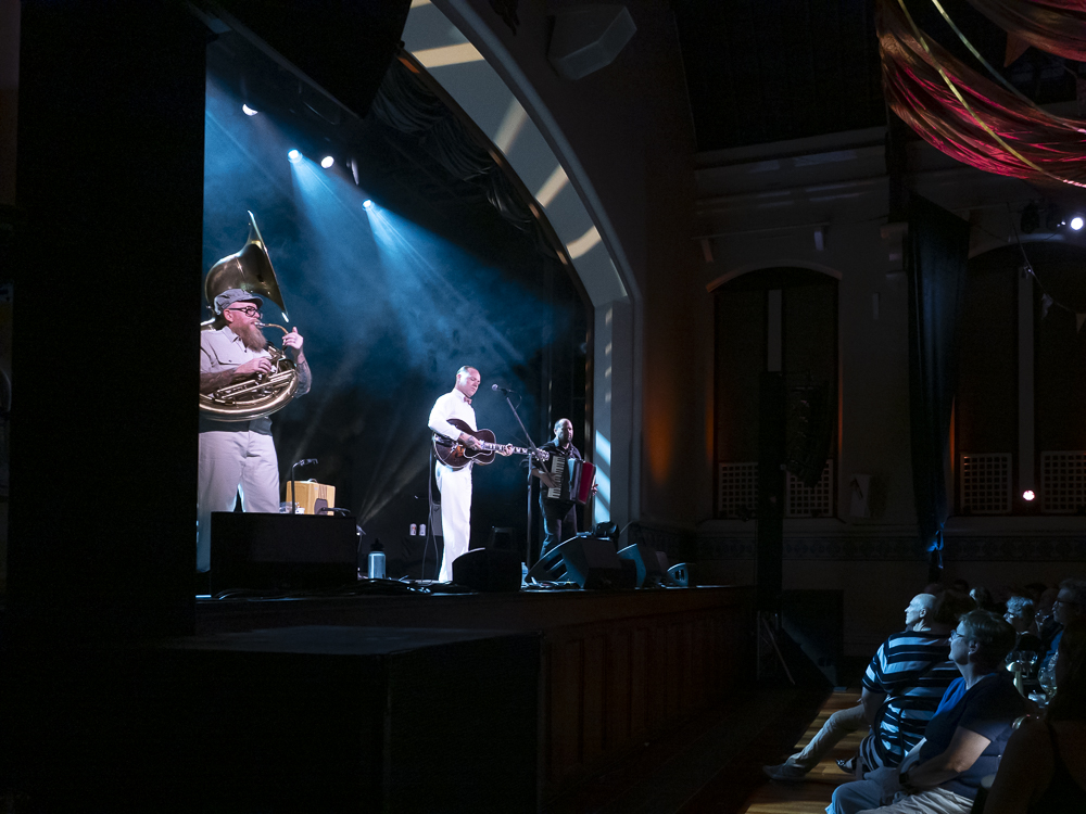 Stoneking rolled through a series of setlist staples, lightly reimagined from the recorded catalogue with his Primitive Horn Orchestra, with his stripped-down backing duo. Tunes like Love Me or Die wafted romantically over the air as the acoustics of the heritage hall generously welcomed the carnivalesque output of the backing accordion, sounding like a love letter that was being written and torn apart at the same time. The low-end bass and percussion were delivered deep, gentle and at times enormous, backing the song like a warm hug as Stoneking’s vocals were delivered through the mic as though being projected through a gramophone you’d find in a local antique store, the acoustics giving his voice an old-theatre bloom, drawling out notes that hung nostalgically in the air.