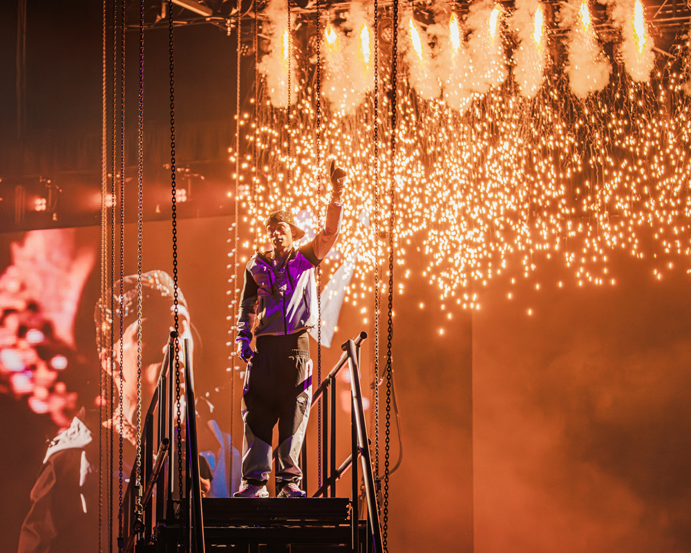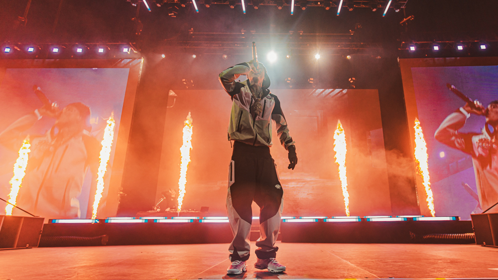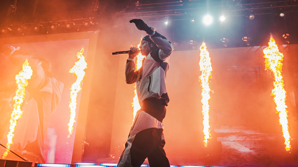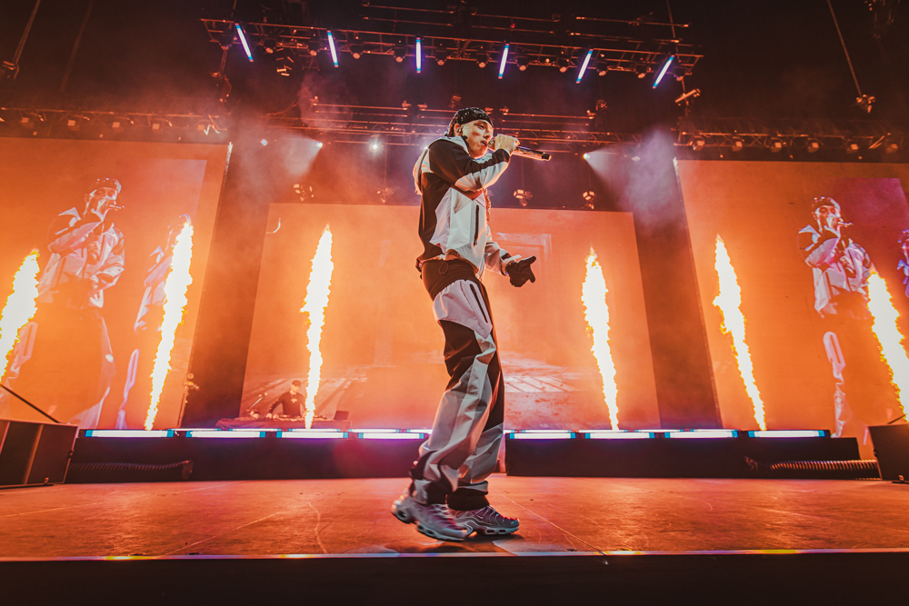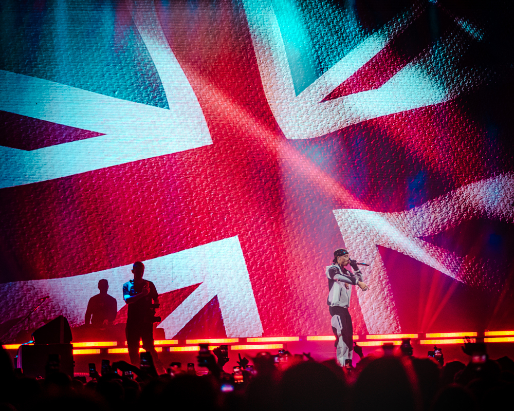 Representing his UK heritage with UK Rap, another collaboration with Dave, Cee commanded the stage in front of a striking visual of the Union Jack. Cee rapped holding a UK flag emblazoned with the words ‘LONG LIVE FDOT’ that had been passed up by a fan in the crowd. It was a moving tribute to the fallen drill rapper who passed in 2023 that may have gone over some concertgoers’ heads, but diehard UK drill fans were moved by the gesture. Cee placed the flag at the front of the stage as the song perfectly transitioned into the 2023 hit Sprinter, again featuring Dave. The arena exploded in excitement, and those seated rose to their feet to dance and sing along to the iconic track. Riding the wave of adrenaline, Cee wasted no time launching into BAND4BAND ft. Lil Baby—easily the fan favourite of the night. The crowd matched him word for word while filling in Lil Baby’s verses, turning the performance into a large-scale duet between Cee and the audience.