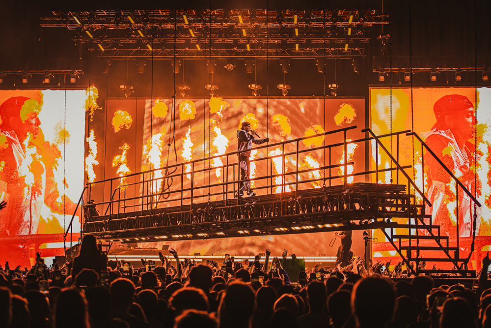 The second half of the set was pure momentum—hit after hit, with not a single lull in audience energy. With an artist like Central Cee, whose discography is so iconic and universally recognised, it was no surprise that the crowd stayed locked in from start to finish. As the catwalk lowered once more, Cee returned to the main stage and launched into LET GO, GUILT TRIPPIN featuring Sexyy Red, and fan-favourite Doja. The crowd erupted once more at the first notes of Overseas, a collaboration with UK rap duo D-Block Europe, whose verses the crowd happily filled in for, the track widely regarded as a generational hit in UK rap.