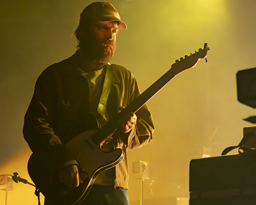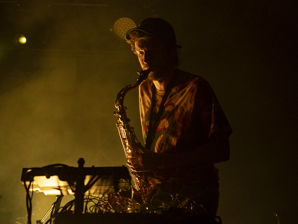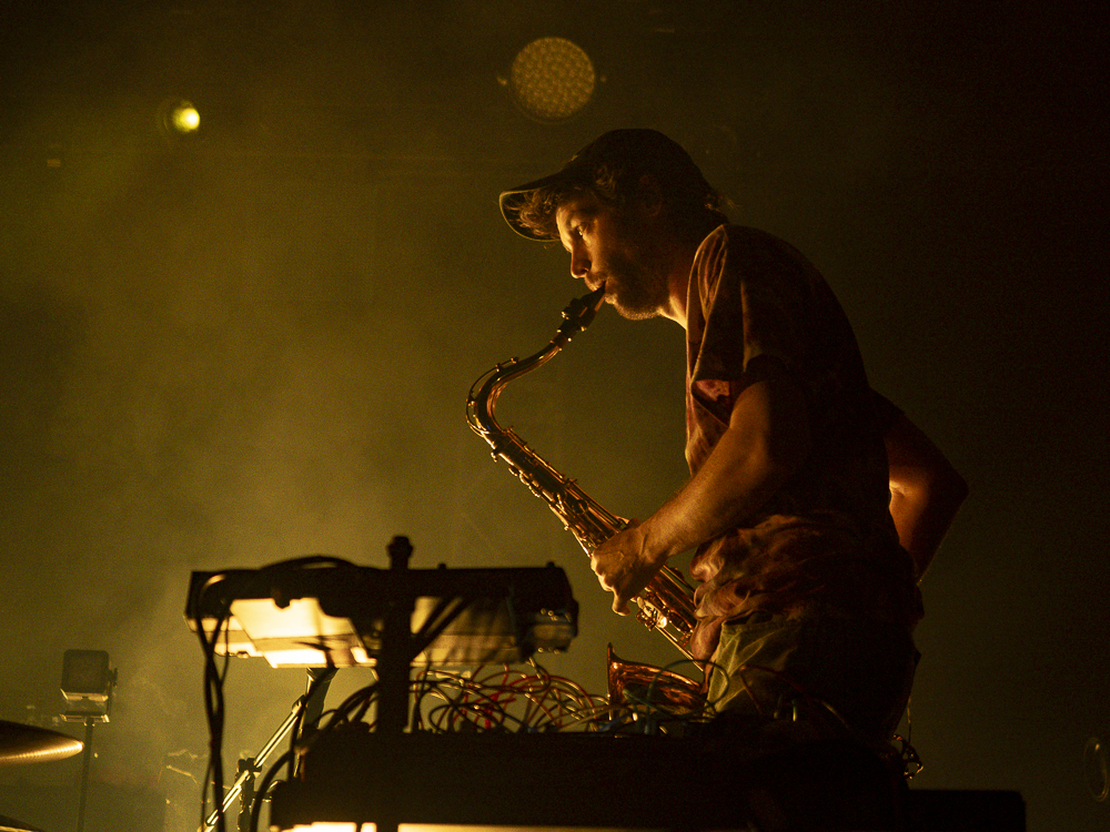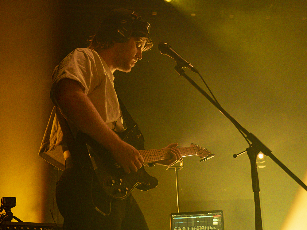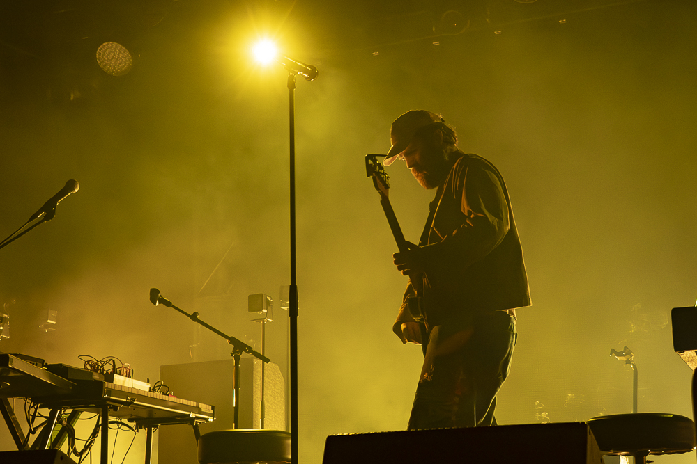 Chet Faker is a multi-talented guy, and his live performance centres around him playing various keyboards, synths and guitar in the middle of the stage, flanked by other musicians. He emerged on the dark, smoke-filled stage in a casual jacket and cap with his trademark thick beard and a guitar strapped on, accompanied by a second guitarist and saxophonist. A slow, droning intro led into the beautiful opening track and one of the highlights from the new album, Over You.