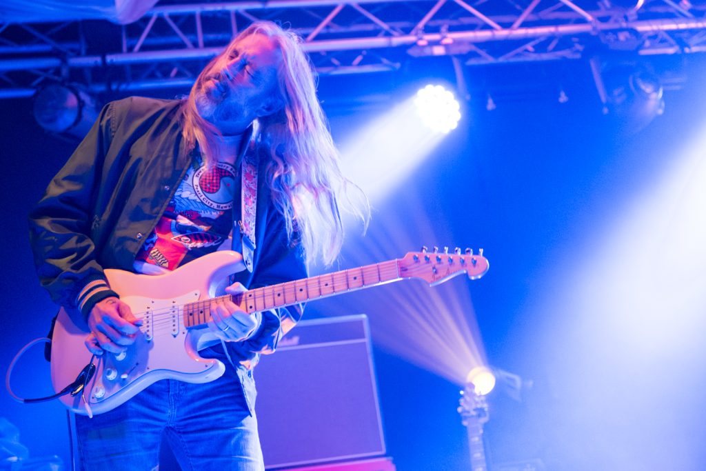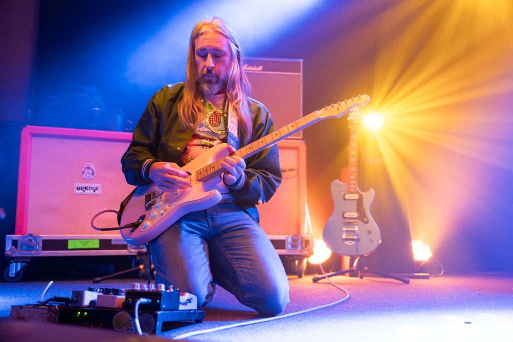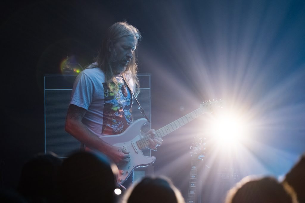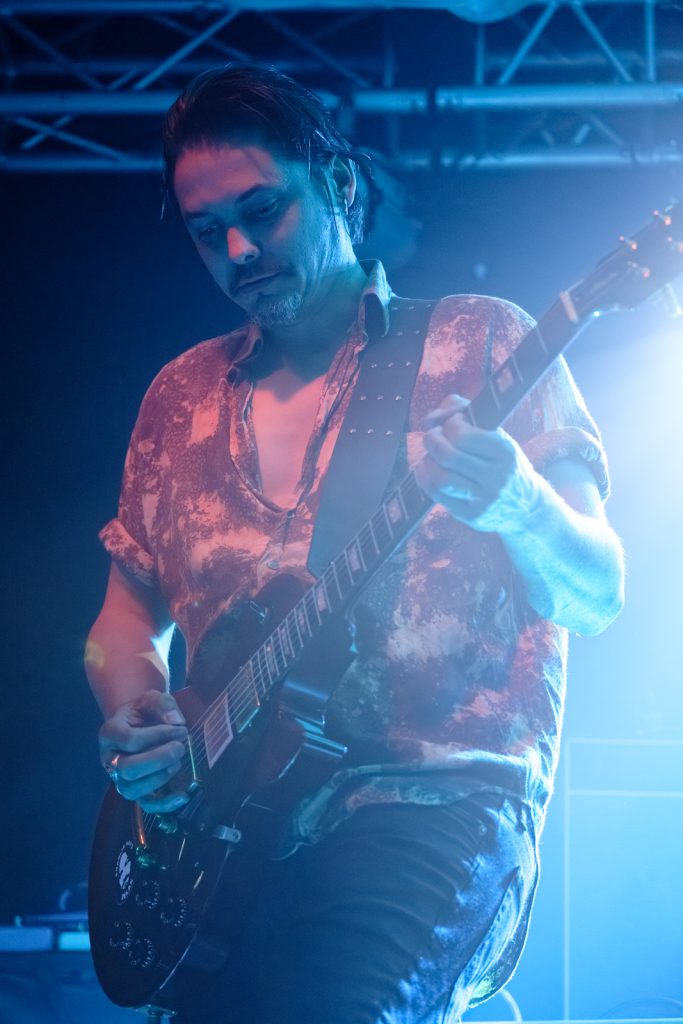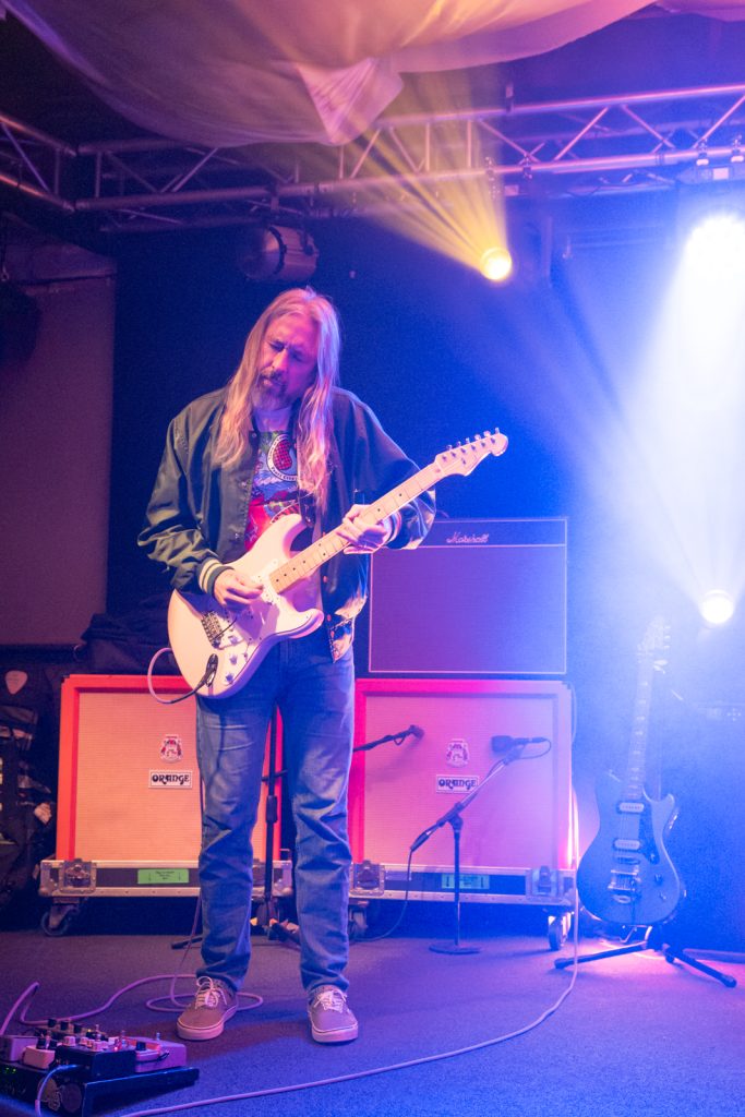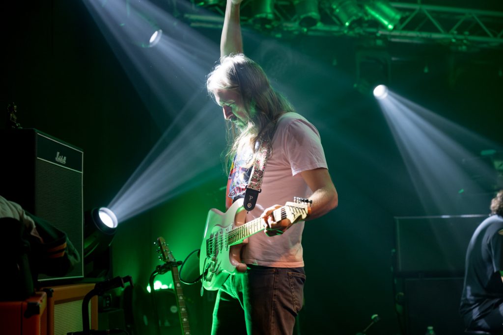 This wasn’t self-indulgent noodling. Mitchell’s guitar stayed articulate, clear, and almost conversational. His solos meandered but never complacently—always disciplined. When the bass kicked up at Mitchell’s cue, the entire room felt it as a solid heartbeat throb, the air thick with distortion.