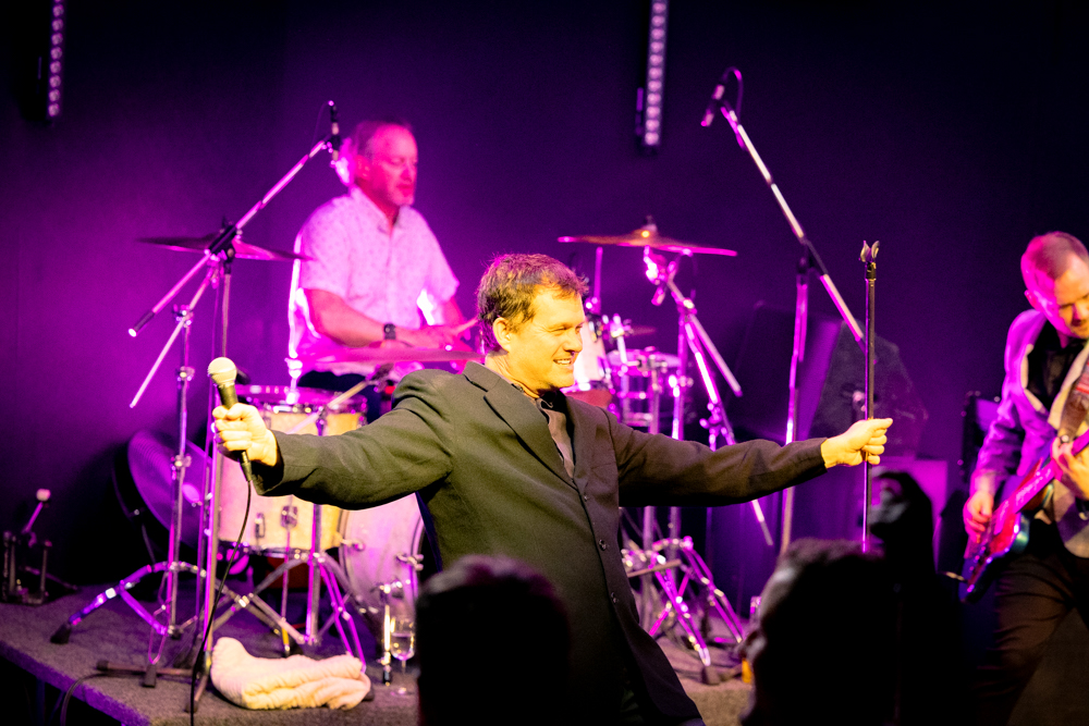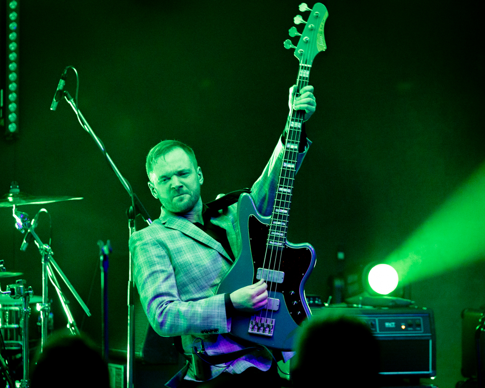 After a short interval filled with barnstorming disco classics, Electric Six strode onto the stage. Or perhaps Electric Five tonight, as lead vocalist Dick Valentine explained they had somehow misplaced their keyboardist. Initially taken as a mere comedy bit to start the performance with highly relatable content, Synthesiser, no further explanation was forthcoming, and over the evening the other instruments pulled together to cover any gap.