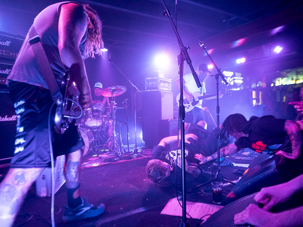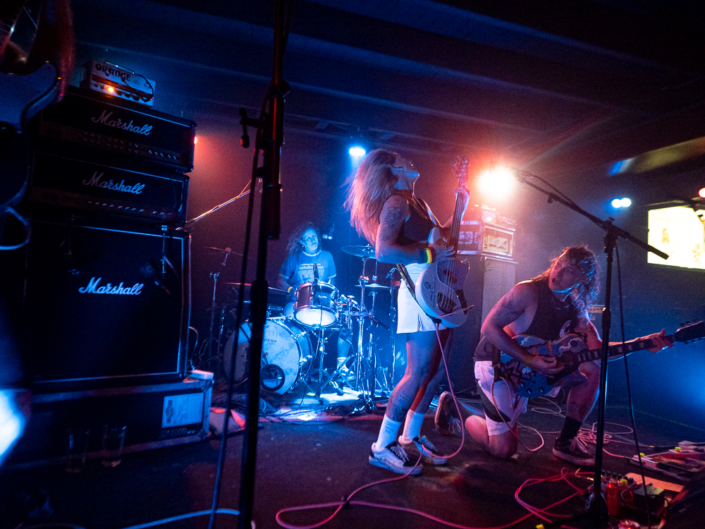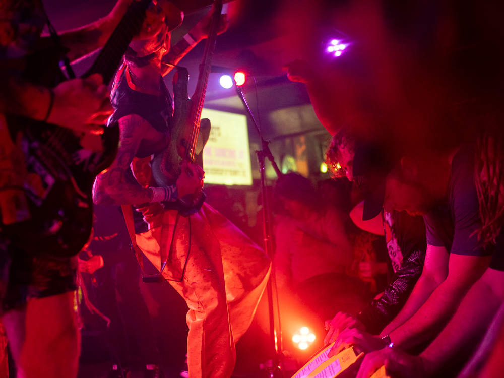 Next up were Ratsalad, a band that originally hailed from Geraldton but now call Perth home. They brought an entirely different vibe to the stage, and with their impeccable stage presence and stunning vocal delivery, they showed just how well-crafted their songs were. Their set was high on energy but also had moments of complexity that grabbed the crowd’s attention, proving they’re a band to watch in the local scene. While they maintained the chaos of punk, their more polished sound felt fresh and exciting and they had the crowd hyped for what was to come.