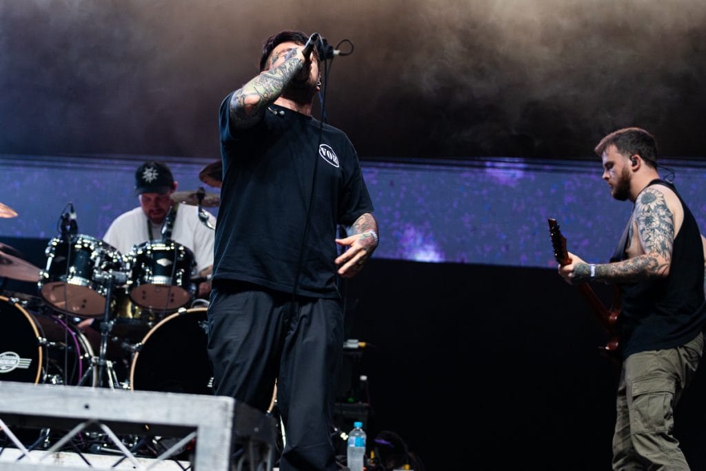 Then comes a moment of mischief. The music cut out, the band stepped forward, and a surprise announcement followed: they need everyone’s help to sing ‘Happy Birthday.’ Thousands of voices rose to celebrate frontman Jamie Hails in a moment that felt both hilarious and strangely wholesome. The sentiment didn’t last long, though—seconds later, the chaos returned as another wall of death erupted across the floor.