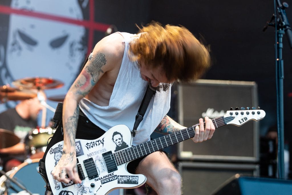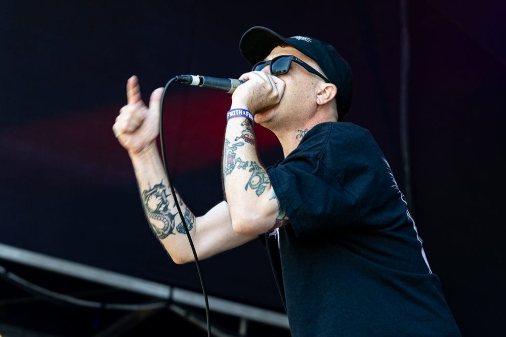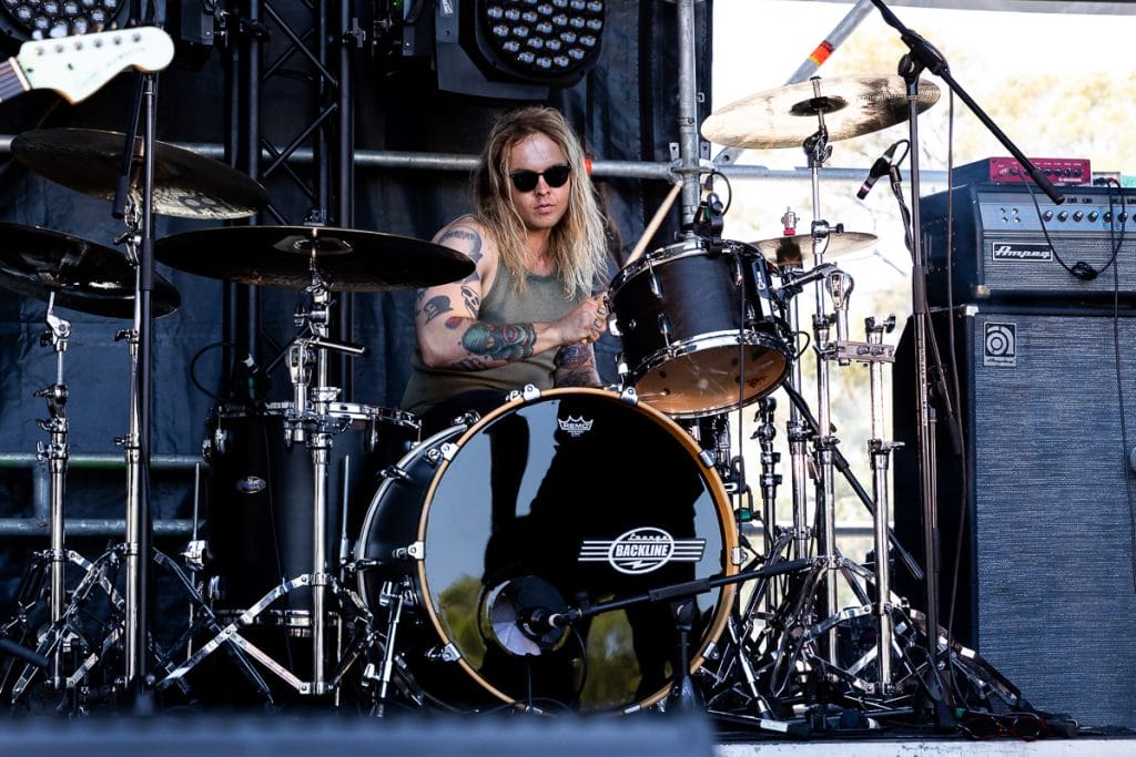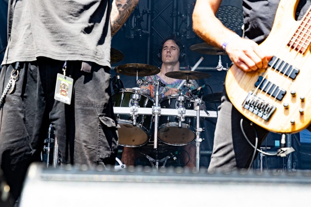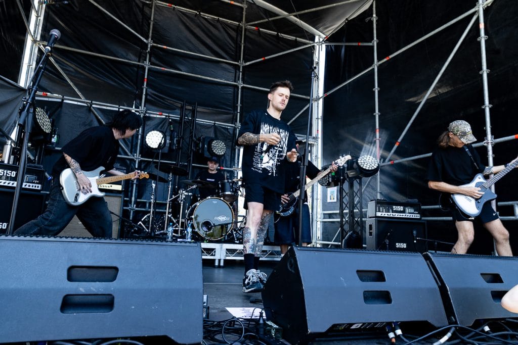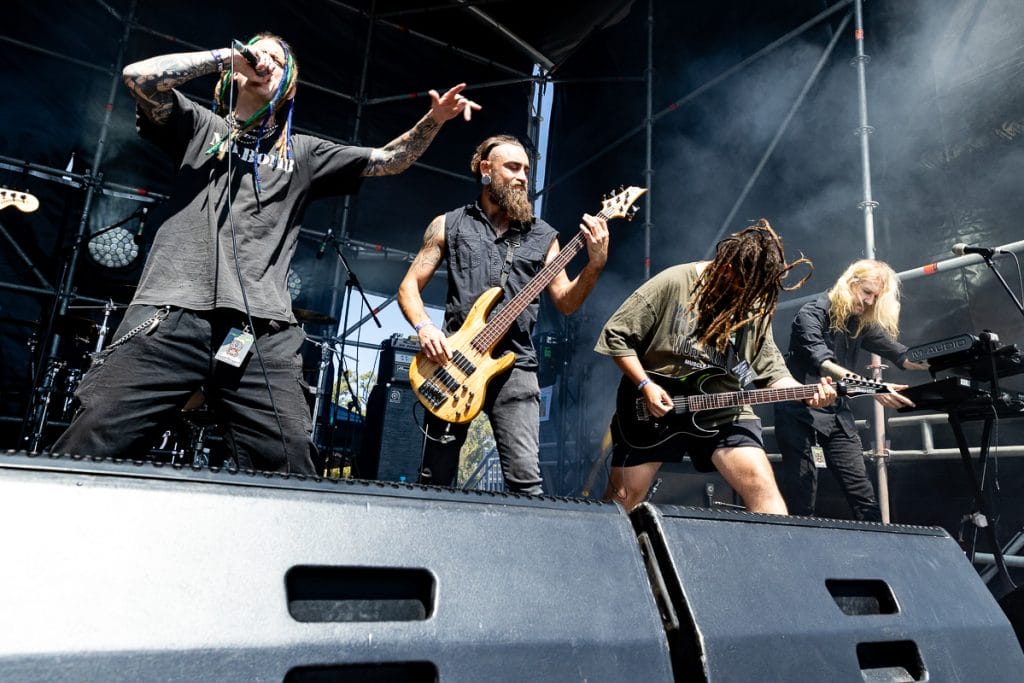 Private Function took the stage next and pulled in one of the largest crowds of the day. “Yeah, we’re Soulfly,” Chris Penney joked from the stage, poking fun at the fact they’re playing alongside some of the day’s biggest names. But any sense of modesty disappeared the moment they launch into their set. The band is pure, unfiltered chaos.