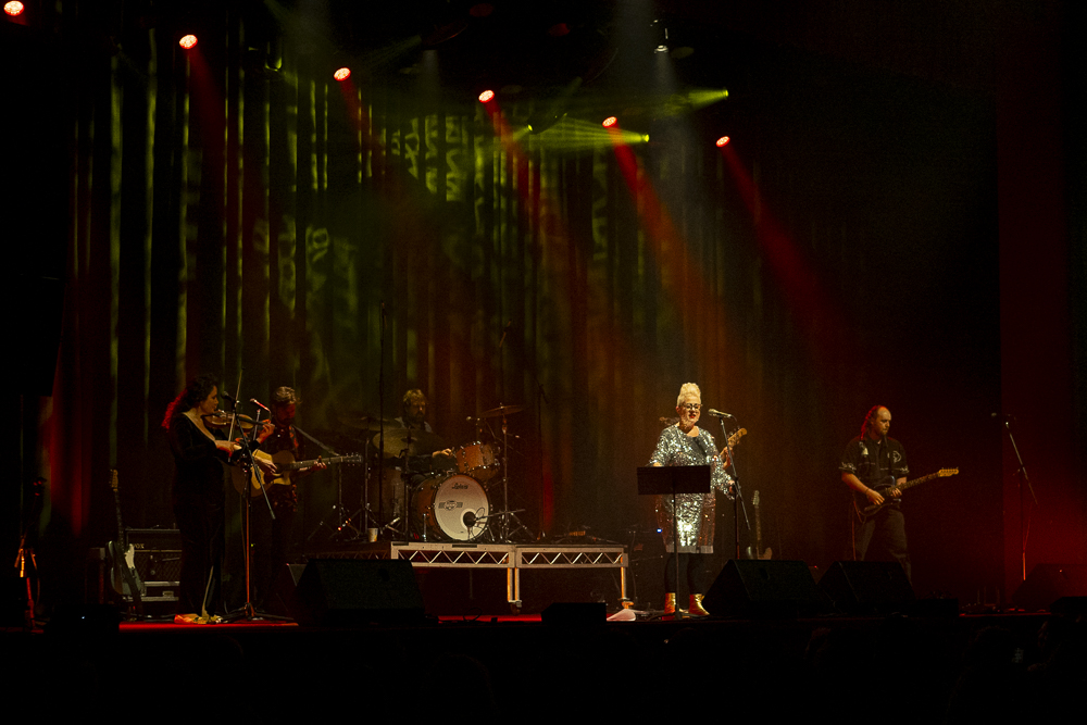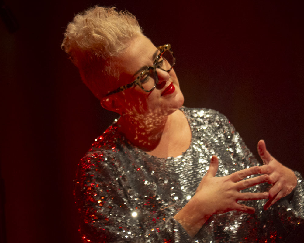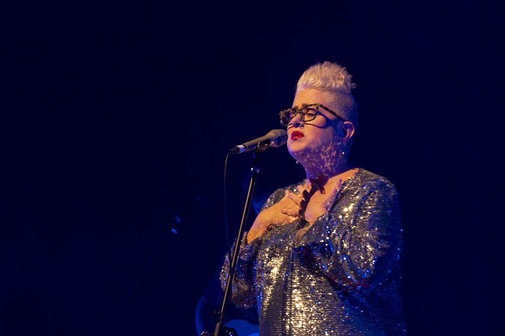 Katie Noonan emerged on stage in a silver sequinned number and chic blonde mohawk. Her presence itself exuded theatre. Opening with the gorgeous Mojo Pin, Noonan and the band held their composure during some slight feedback issues, which were swiftly rectified.