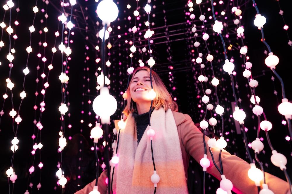 Each turn of the trail brings a different mood: one moment you’re tiptoeing through a passageway of posies; the next, you’re enveloped in a corridor of laser beams pulsing with subtle rhythm. From established artists to primary school fauna and flora drawings, the installations feel carefully curated wherever you turn.