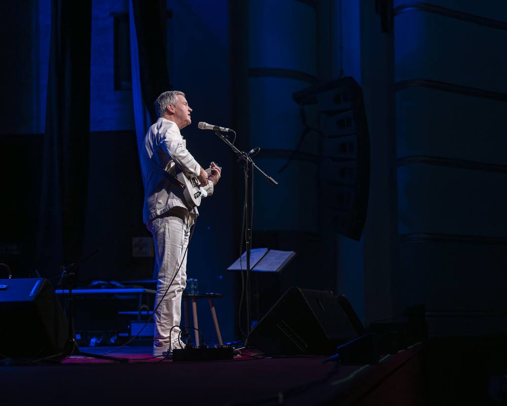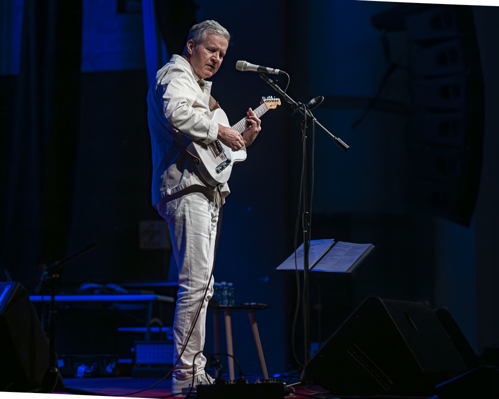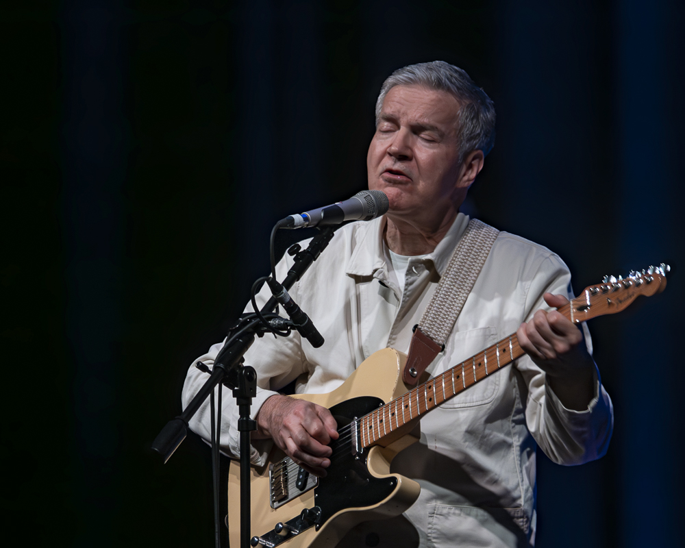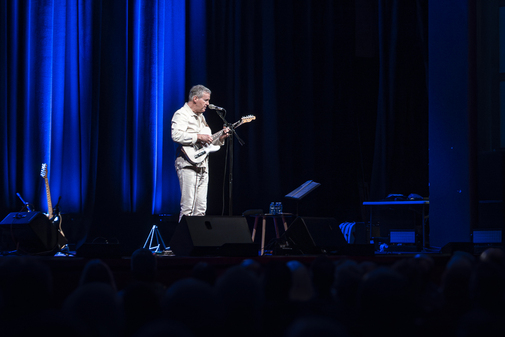 After performing Period Piece from his 2013 album Standards, Cole noted, “You will gather by now I’m your opening act. After a 20-minute intermission, I will then return and be the headline.” After turning in performances of Undressed from his 1995 album Love Story and 2cv from Rattlesnakes, Cole took his interlude. He reemerged a short time later to find the blue stage highlights had turned red. Continuity came via his continued exploration of Rattlesnakes with Charlotte Street before venturing forth a year to 1995’s Easy Pieces with Why I Love Country Music.