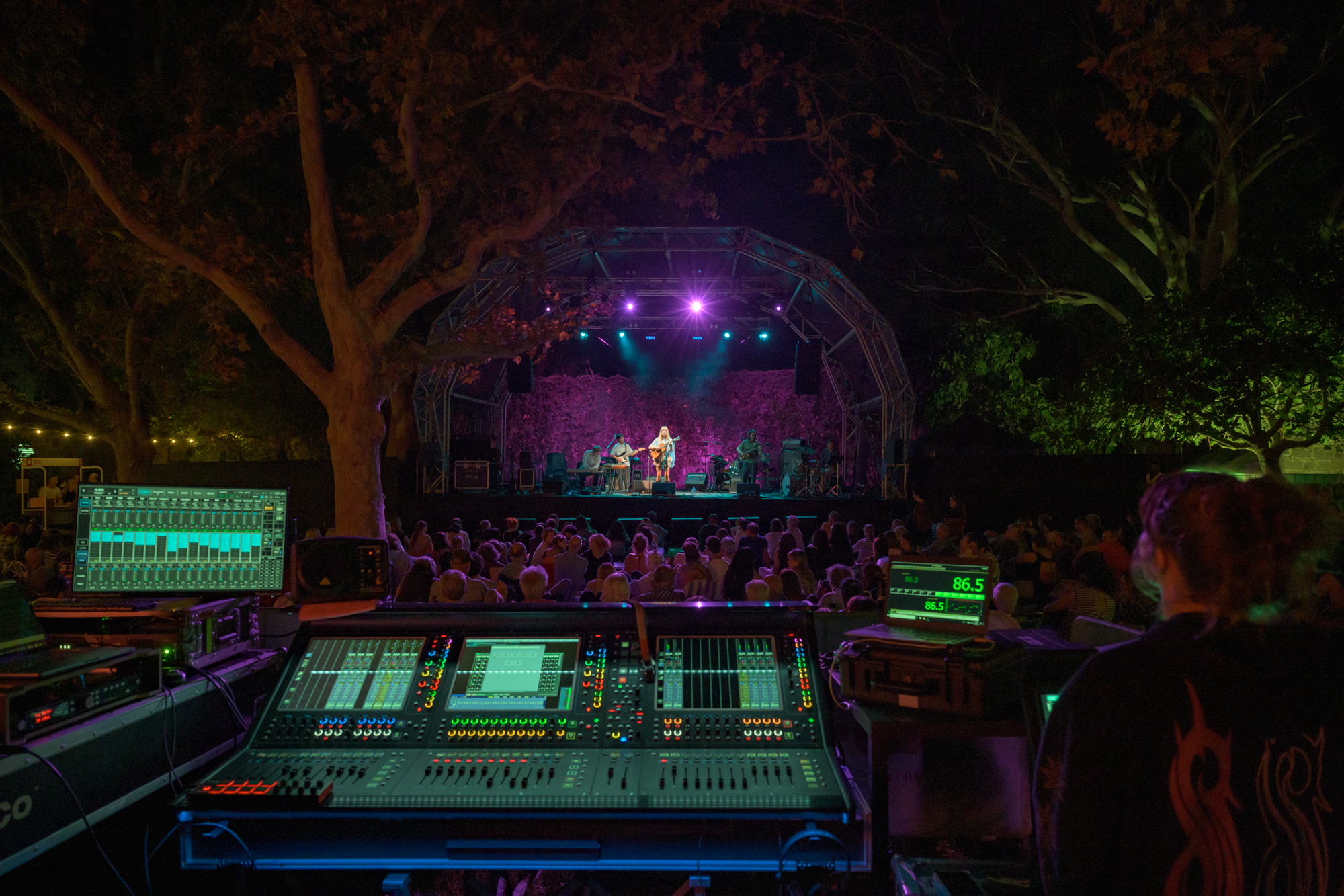 On the keyboard, Marlon serenaded fans with Nga Ara Aroha, meaning ‘The ways of love’ in English. “Sometimes you are a bell, ringing all the time,” the melancholy song said in te reo Māori. Panaki is a song that means ‘gentle breeze’. Like the title, the song began like a gentle breeze and then built into a more dramatic sound with drums and electric-guitar shredding.