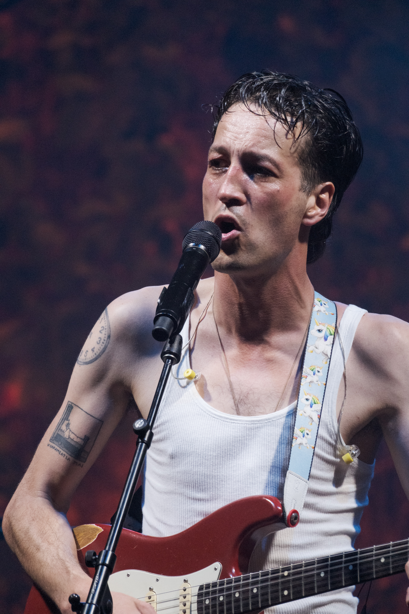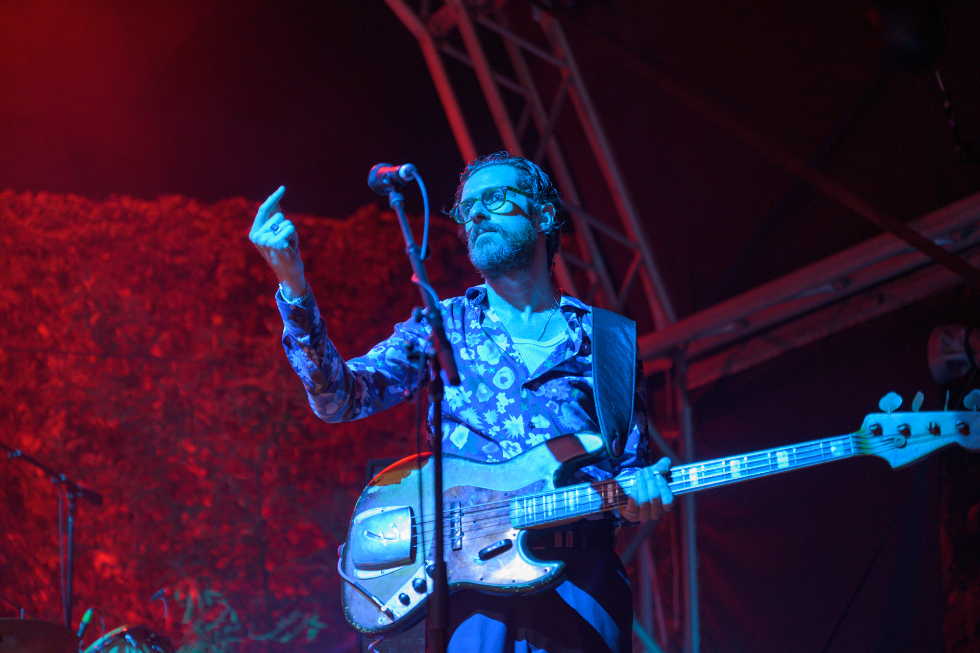 “Who would break up with you?” A man called from the crowd. The band leant into the country sound with a lap steel guitar. Kuru pounamu was one of the outstanding songs that resounded with the strength of cultural importance. Between songs, Marlon strummed the guitar and began a rendition of Jeff Buckley’s Lover, You Should Have Come Over, which tapered off as he threw down the sultry rock ballad Vampire again. The excellent roadies took Marlon’s guitar off him so he could strut around the stage for Party Boy.
