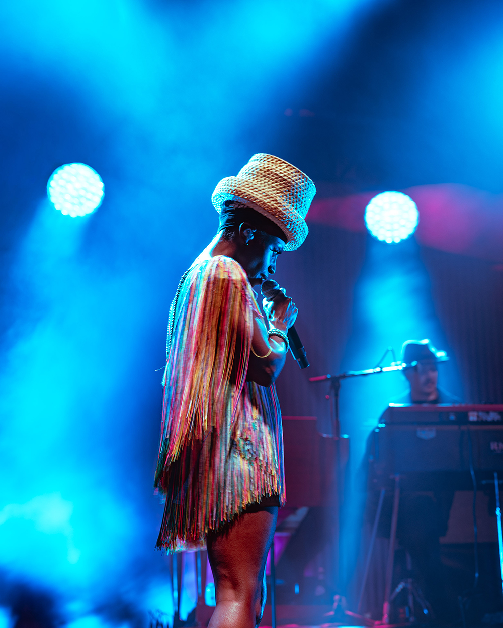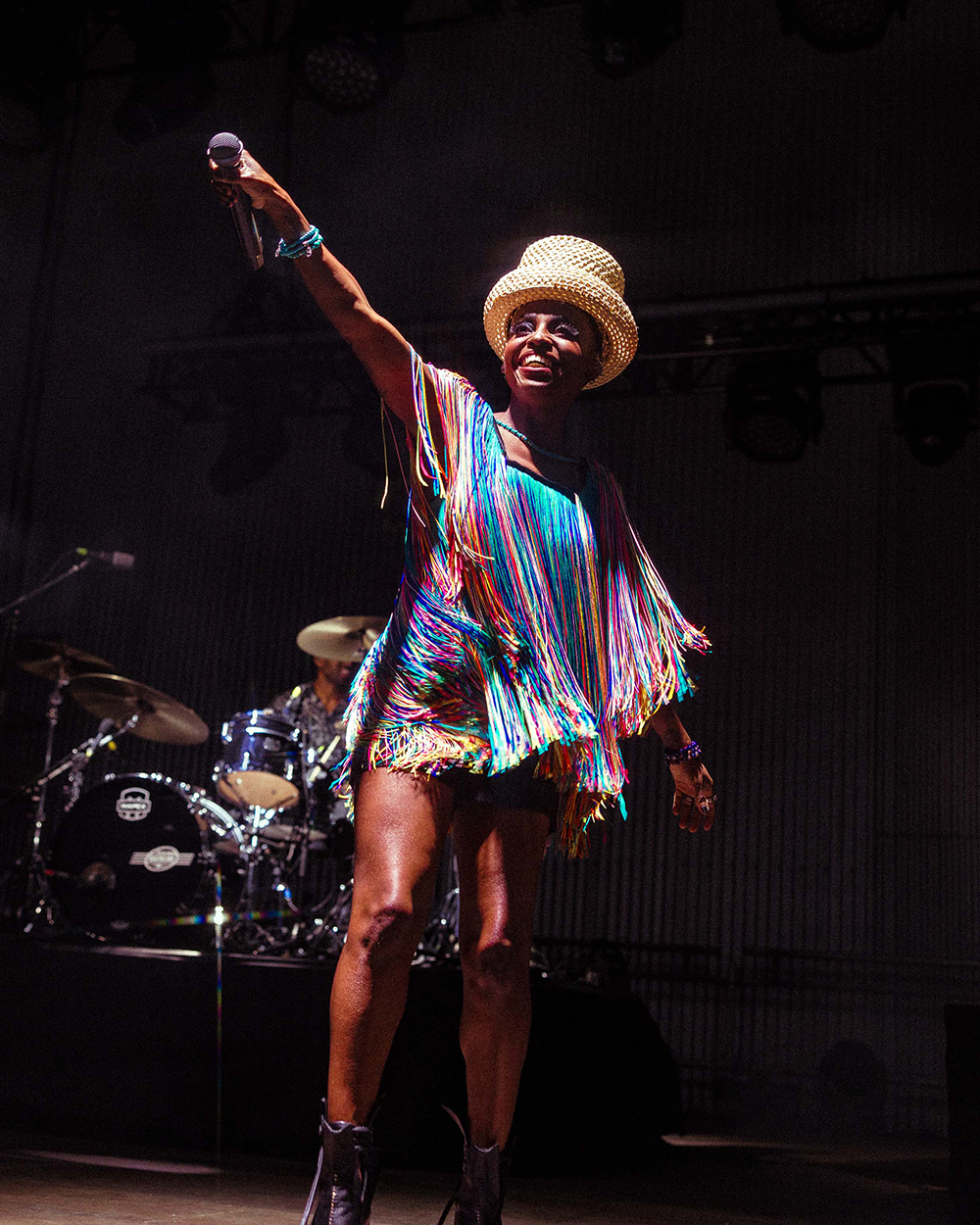 Skye was now sans hat, her hair up in braids with a sparkly headband. She thanked the whole band individually and said how much they were impressed by the venue and enjoyed playing there. Godfrey then thanked the “amazing and very sexy” Skye—the roars of approval proved much of the crowd concurred. She really is the iconic figurehead of the group, and exudes effortless charm and charisma, as well as being incredibly stylish and a wonderful dancer, not to mention That Voice!