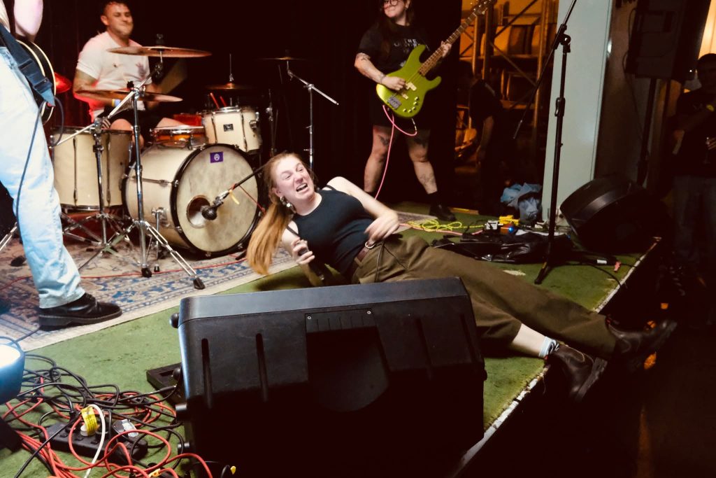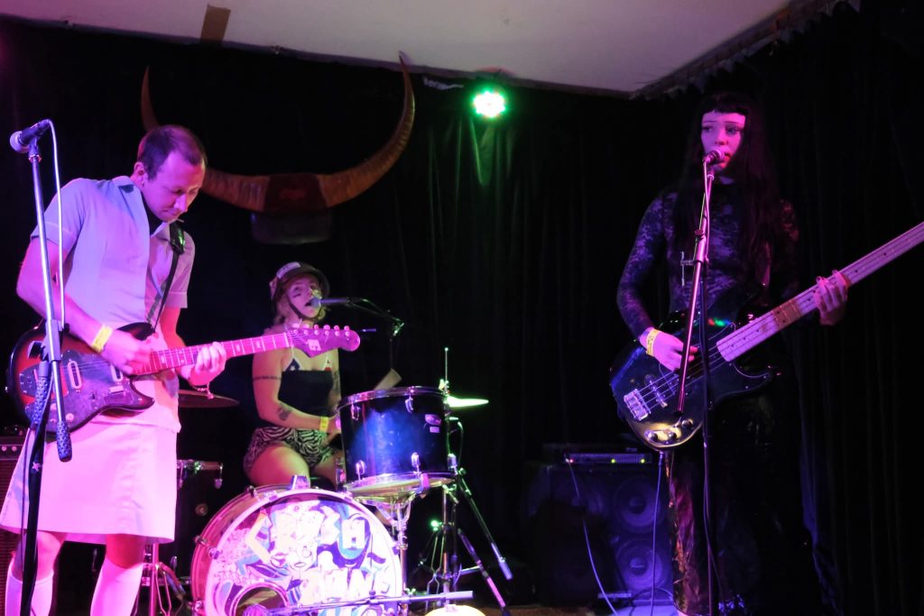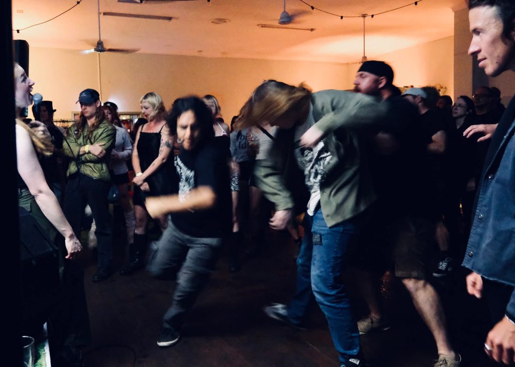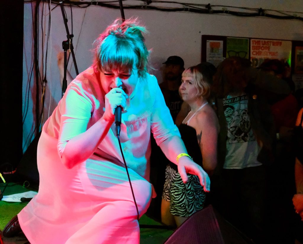 Then the crush: Cold Meat packed the entire downstairs to the back wall. Front-lady in nightie, Ash Ramsey, cradling a babydoll (mums on revolt—less of a Halloween costume and fair enough), Siouxie-grade bark with a British tilt, and a set that toggled their 2025 Cake and Arse Party material with oldies. Bodies, doll included, ping-ponged about: “Your body, your house, your TV set…” vocals blasted all the way to the back. And a kudos from Ash to Permanent Residence’s Greg for truly understanding a mixed bill.