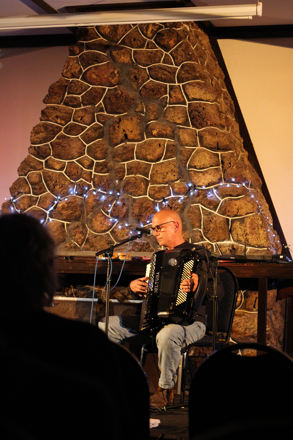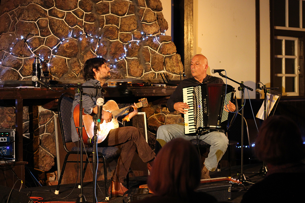Three: Guia and Tesi, the Italian folk maestro (Tesi) and his vivacious accompanist. The warm surge of Tesi’s diatonic accordion under Guia’s (pronounced jew-a) exquisite guitar and husky voice sent shivers down your spine.