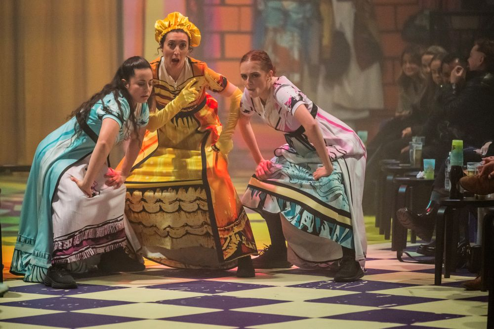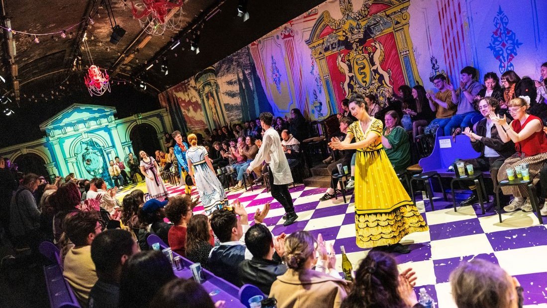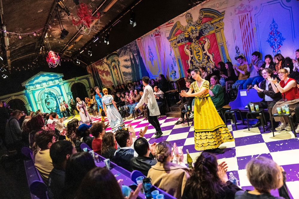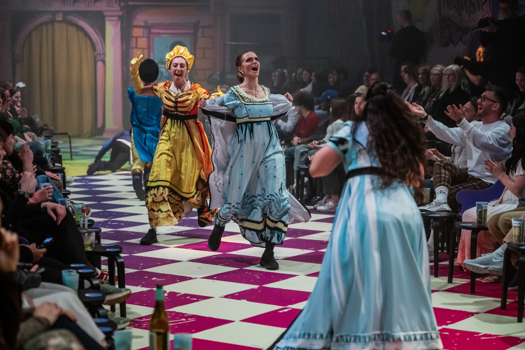 Mention must be made of the delightful staging of the piece, a rectangular in-the-round setting, with the nearest audience members almost atop the actors and many shared tables crowded behind. As the troupe exited and entered the stage from all four corners of the room, this leant into an earned intimacy for the evening, warm and cosy as deep winter stormed outside.