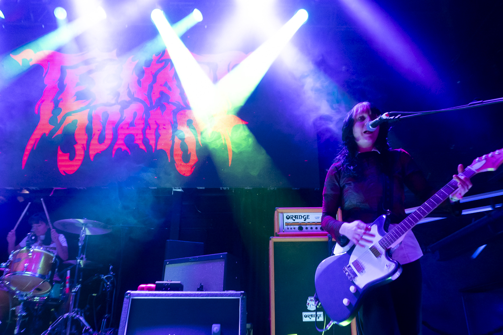 But first up, Adelaide duo Teenage Joans. Tahlia Borg and Cahli Blakers bounded onstage with ridiculous energy—exuberant, infectious, and already armed with serious credentials despite their overt youth (Foo Fighters, Sum 41 supports). Sweet Things Rot blurred saccharine with emo before crashing into Ruby Doomsday: “You’re the rot that grows inside my chest.” The torture of young love and unrequited desire, all delivered with a boisterous charm, flattering their idols without lapsing into imitation. By Superglue, the crowd had arms waving like it was an arena gig.
