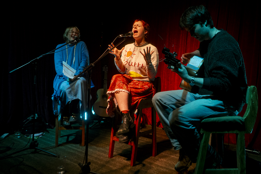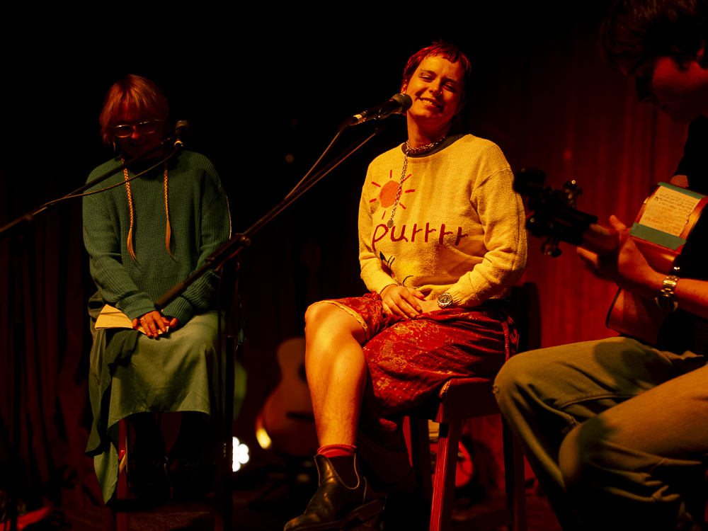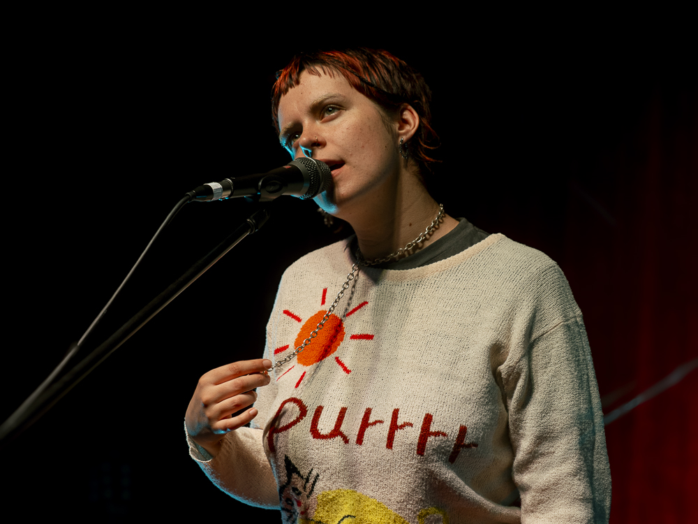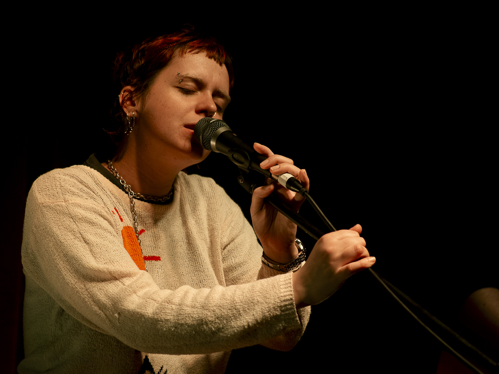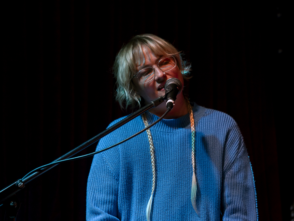 Damien Goerke from Sugar Wife kicked things off with warm, distorted acoustic tracks, cutting vocals, drum machines and easy banter with the crowd, inviting those outside the door to enter the space for the early sets. His set peaked on his final song, when Angie Colman ran onto the stage to join him for their 2022 duet, Slack.
