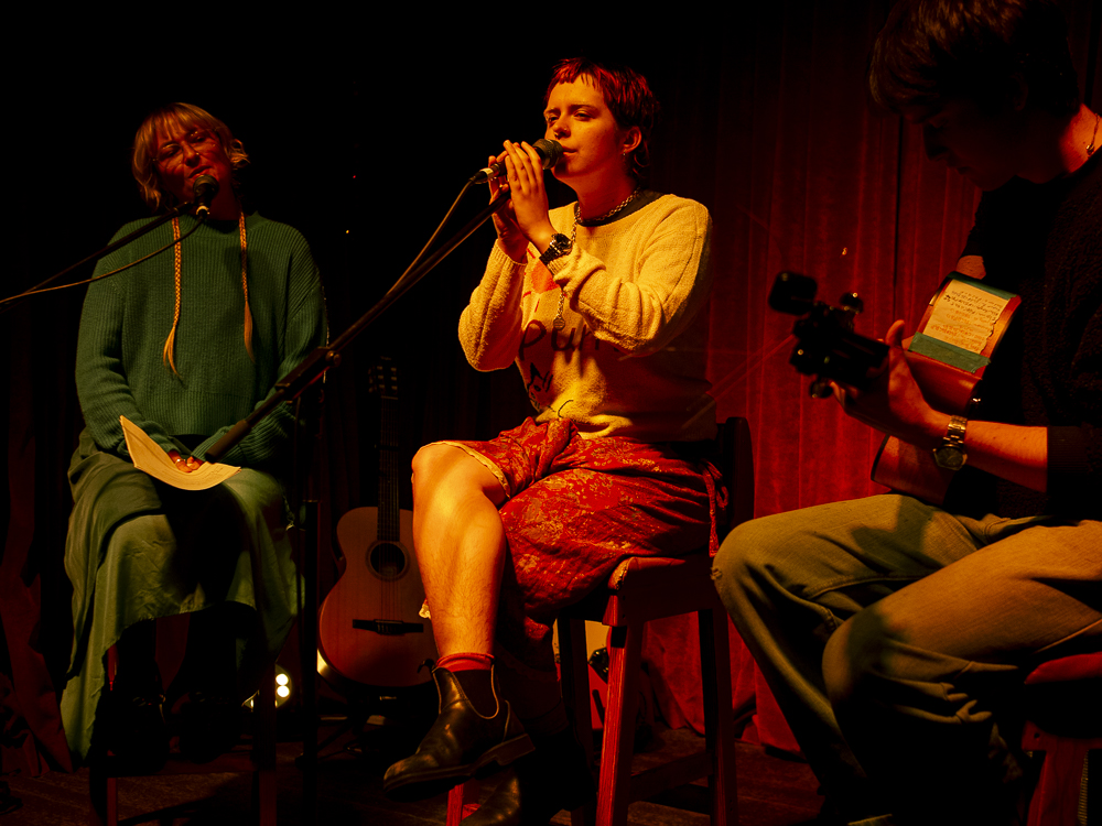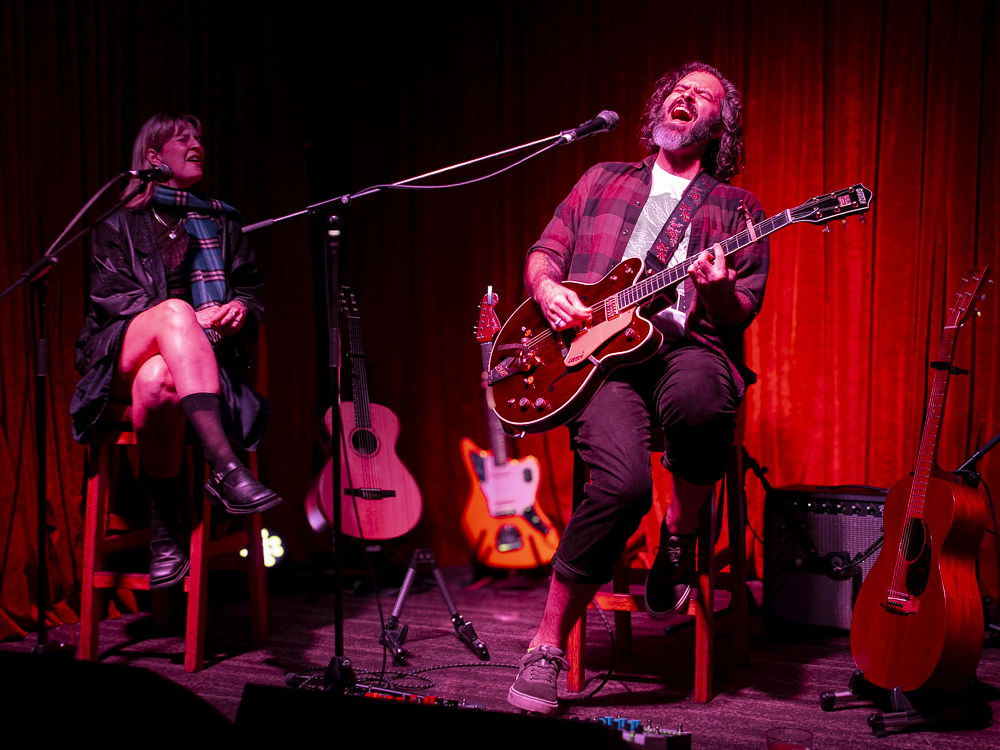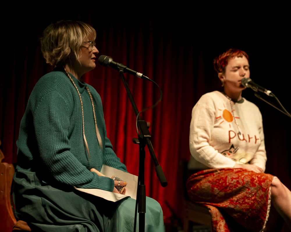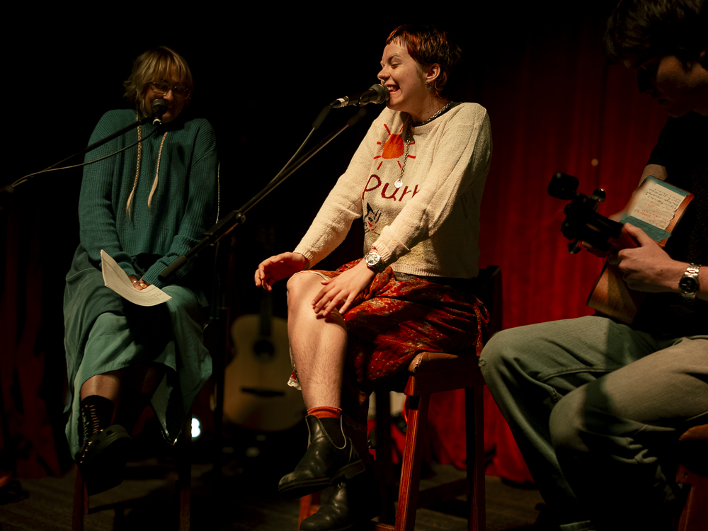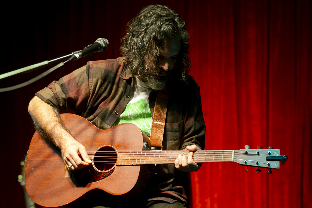 Damien Goerke from Sugar Wife kicked things off with warm, distorted acoustic tracks, cutting vocals, drum machines and easy banter with the crowd, inviting those outside the door to enter the space for the early sets. His set peaked on his final song, when Angie Colman ran onto the stage to join him for their 2022 duet, Slack.