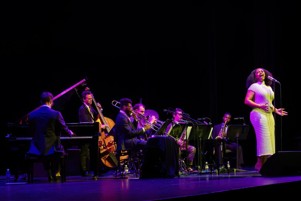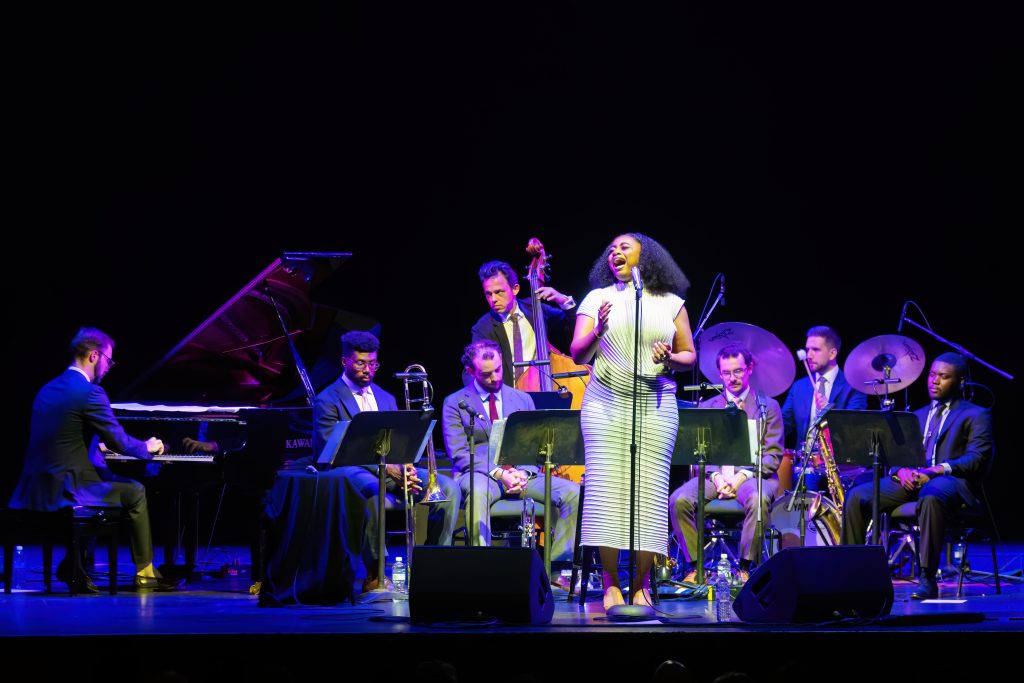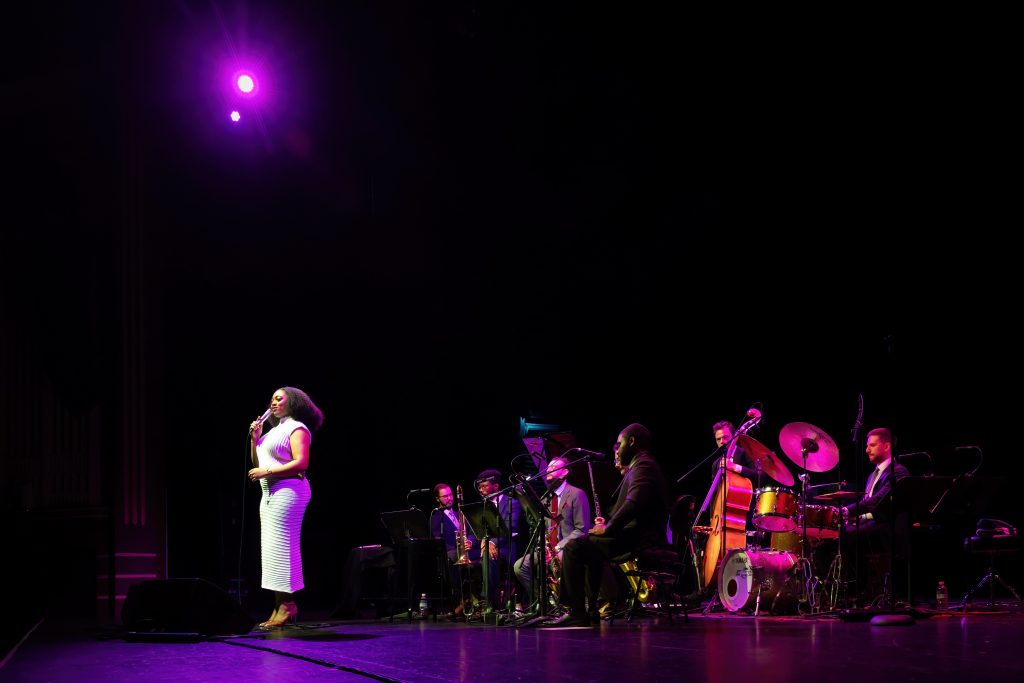 They opened with Duke Ellington’s Come Sunday, arranged by the band’s trombonist, and if a song can double as a sermon, this was it. Piano-led, reverent, with Samara’s gospel fire simmering beneath—her “Dear Lord” was more invocation than tune. Then—bang—into bebop land, all sizzle and sass.