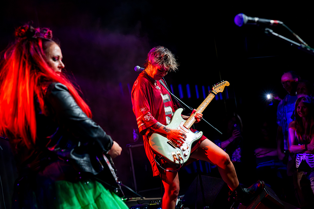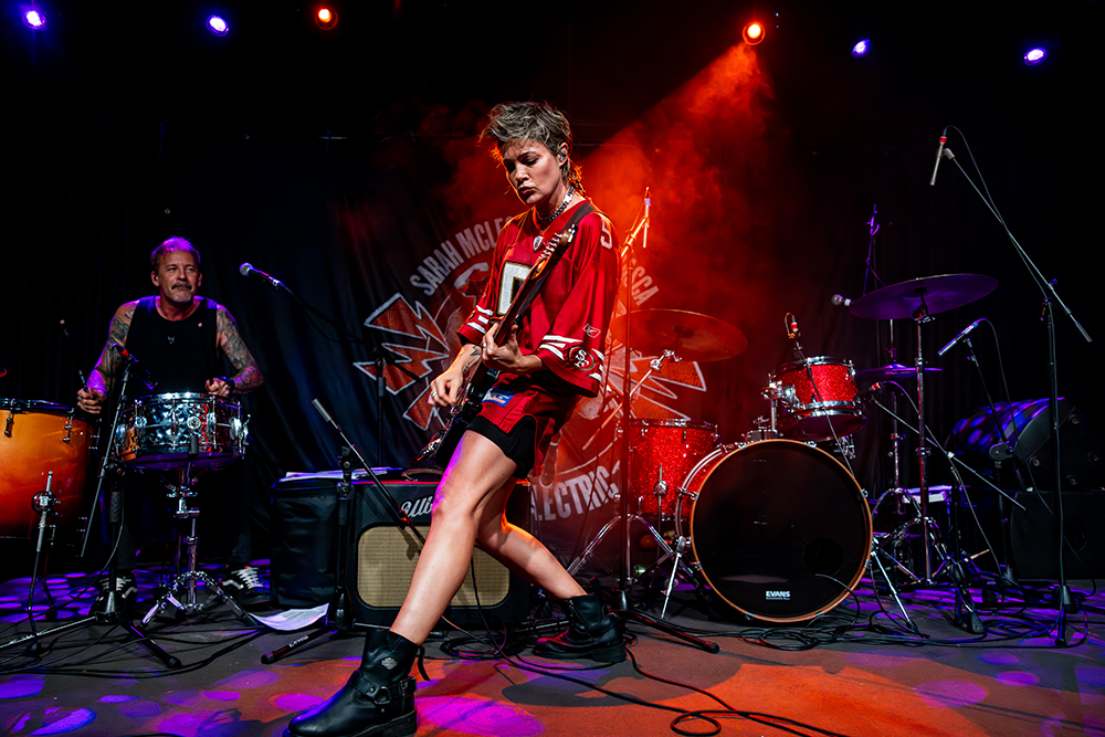 McLeod then imparted her set with the first of a couple of unexpected turns. A gorgeously ferocious cover of Taylor Swift’s Wildest Dreams was driven along by Skelton’s driving drumming on the tom and McLeod’s sprightly guitar, while the chorus was patently brash and completely captivating. After diving back into Beauty Was a Tiger with He Doesn’t Love You, McLeod then revisited The Superjesus for the band’s 2000 anthem, Gravity. The next surprise was delivered when McLeod enlisted the crowd’s vocal prowess for a spirited rendition of Max Merritt’s gorgeous 1975 classic, Slipping Away. Drawing on her custom-built guitar’s bass capabilities, Gutter Queen was impeccably imparted with a suitable wallowing low end that came with an obligatory leap from the drum riser to end the set.
