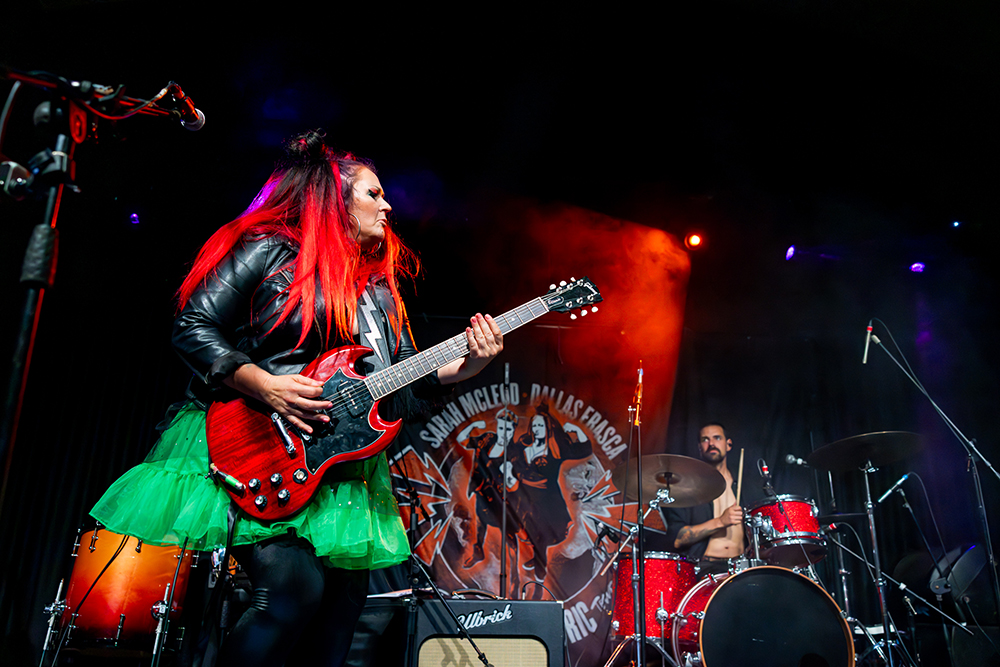 McLeod then invited Frasca and Barber to join her and Skelton for a Green Electric set. A feisty rendition of James Brown‘s It’s a Man’s World was followed by an equally determined version of Bikini Kill’s Rebel Girl. Creedence Clearwater Revival‘s Fortunate Son was next to make an appearance in what was quickly evolving into what would be one of the most robustly expressive jukebox playlists anyone in any bar around the world could select. That was emphatically cemented when the four-piece launched into The Beatles’ Revolution.
