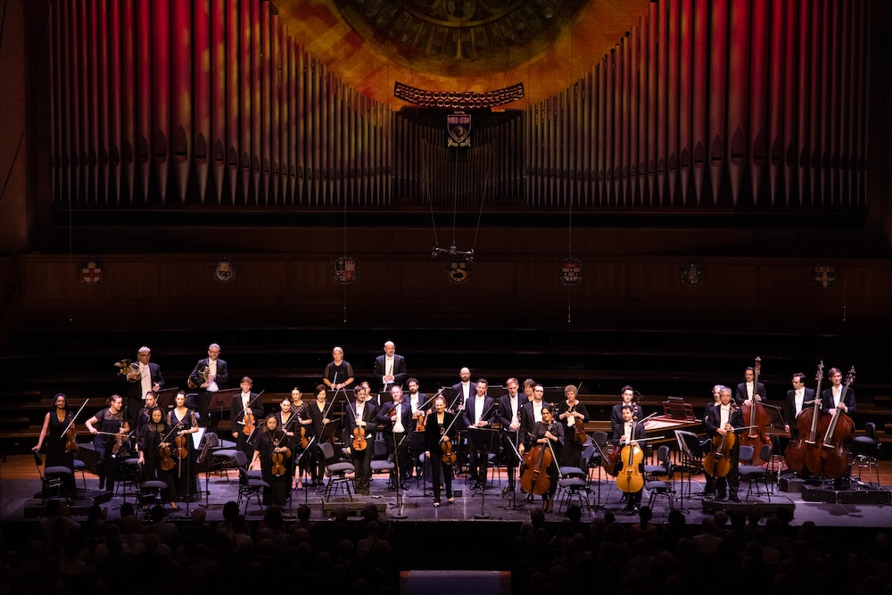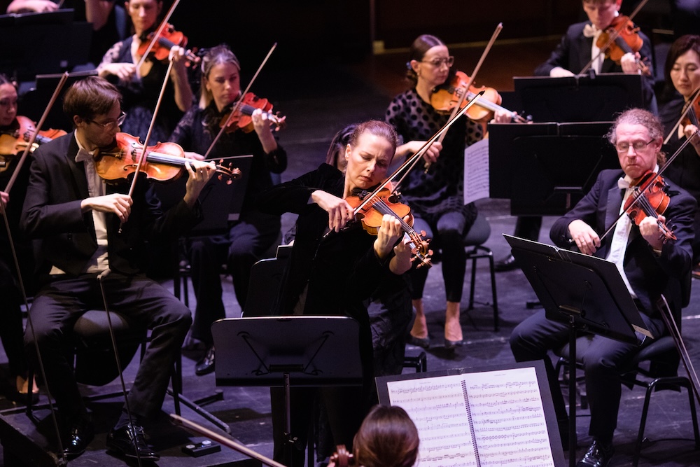 Vänskä bristles with spritely energy—you could feel it from the back of the hall as she glided onto stage. Standing in the centre circle, without a podium, her bow as baton, she briskly launched the strings-only orchestra into Davies’ startling contemporary composition.