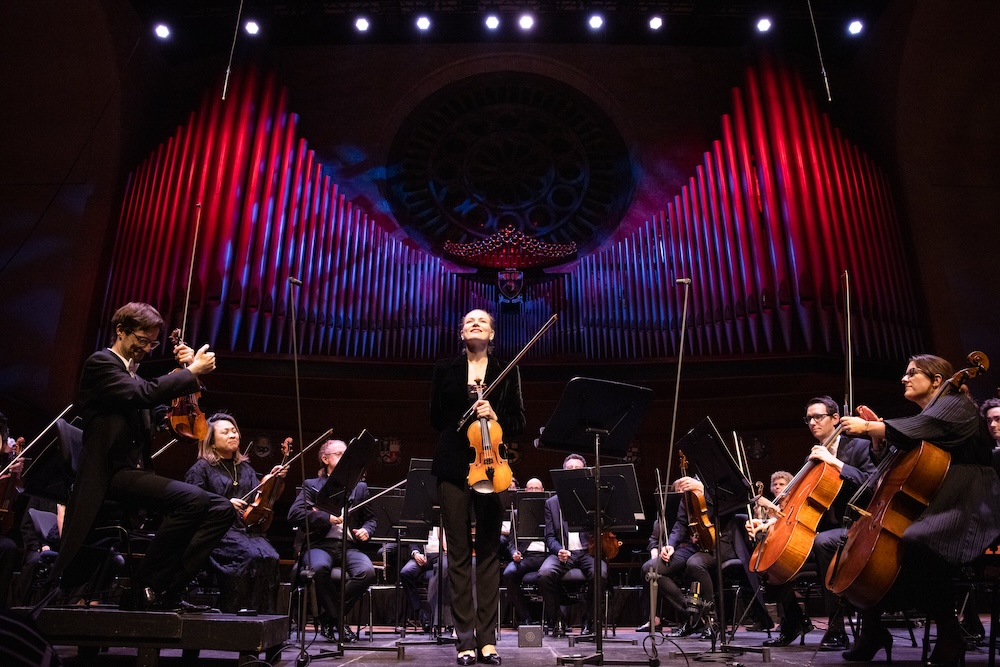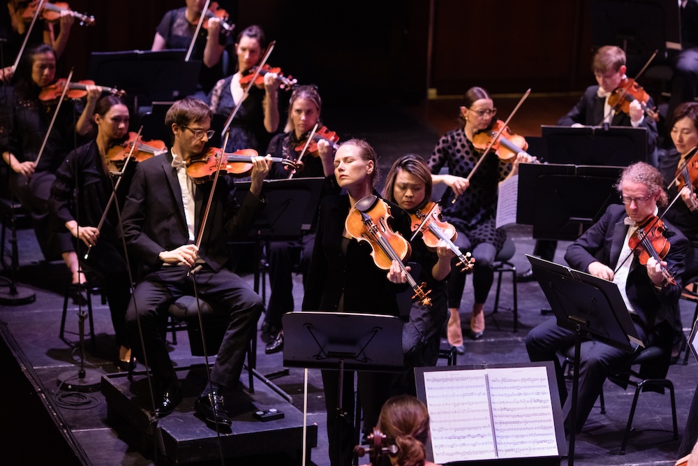 Throughout this symphony’s performance, especially in the final movement, Vänskä bounced in her seat as she simultaneously conducted and played. She would rapidly finger an intricate line, wave her bow to lead the band, then deliver another run of frenetic notes. Accustomed to the ACO, where only the cellists sit, it seemed her instinct was to jump to her feet. She simply couldn’t sit still. Her energy was infectious.