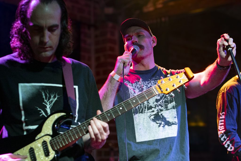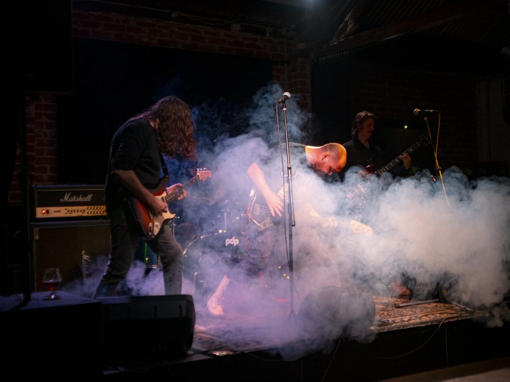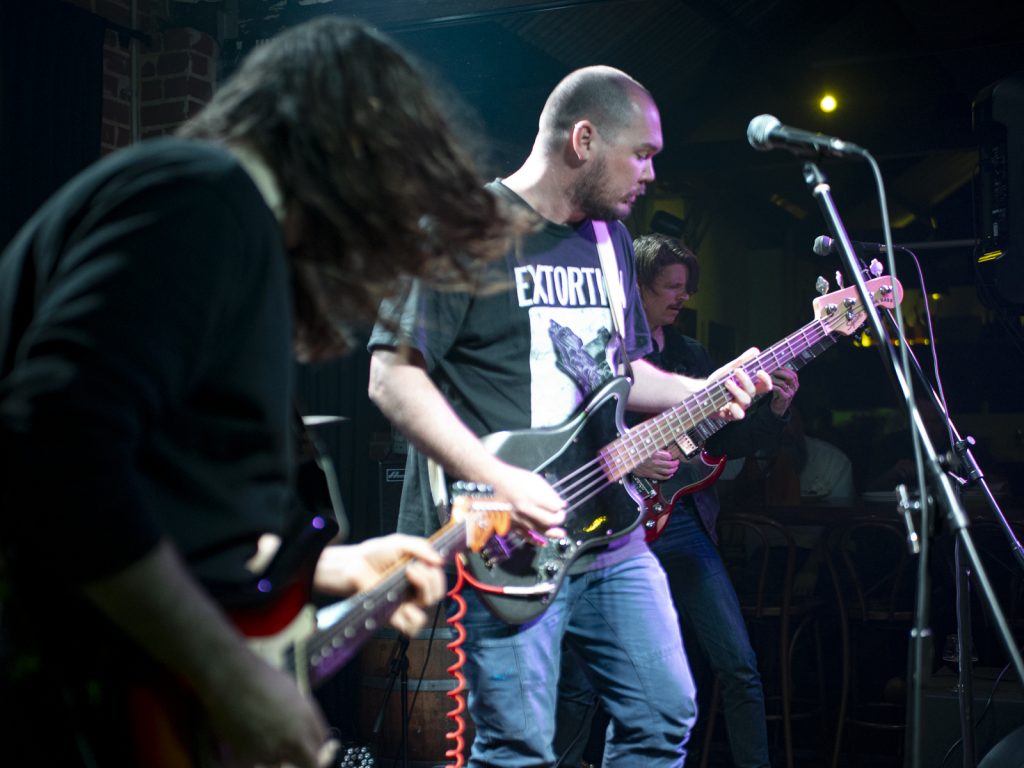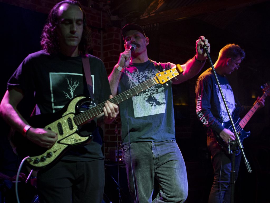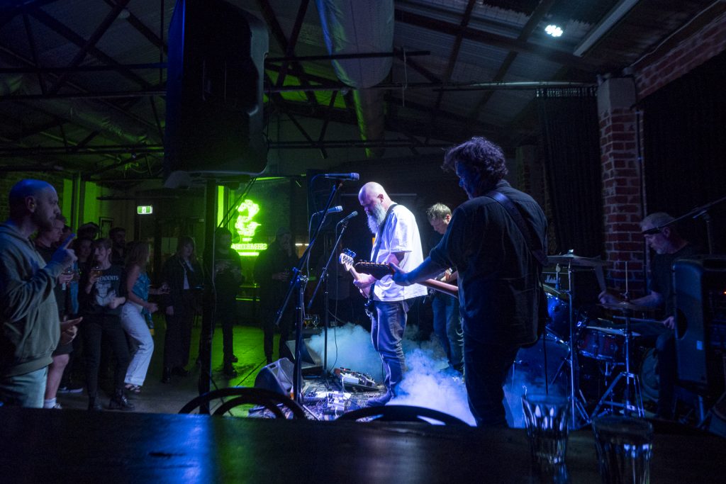 There was comedy in the carnage too—the centre-stage bassist gyrating with comical earnestness, a cheeky bow to the Shepparton Airplane gents seated up front with their dinner, and the running gag about which Perth highway their next track referenced (Canning Hwy, btw). All up, an apt starter for a night of bands going for broke in the Brewery’s back room.