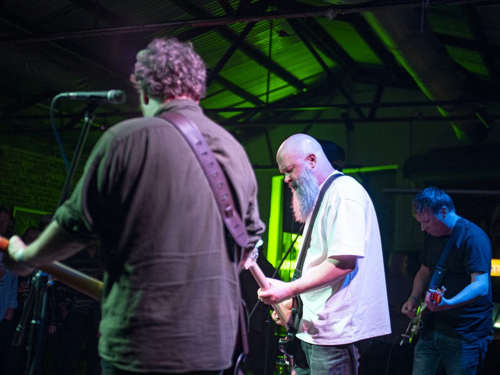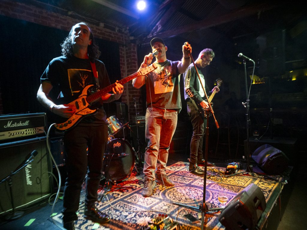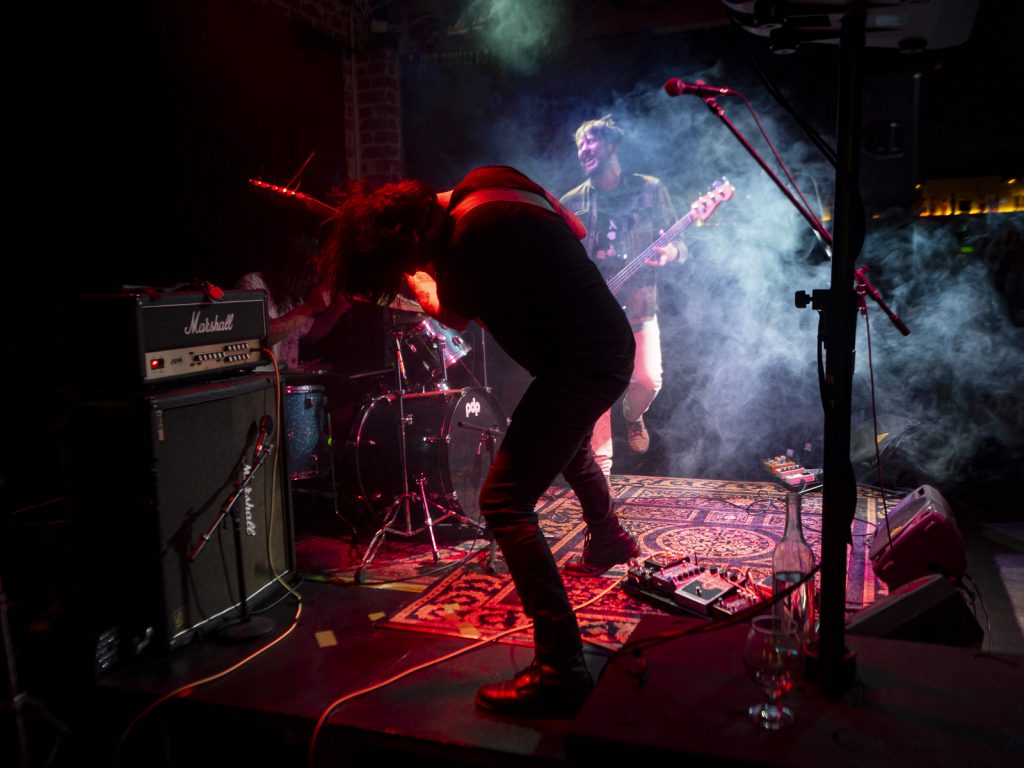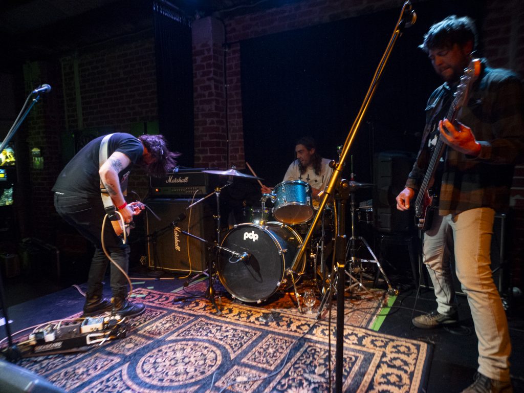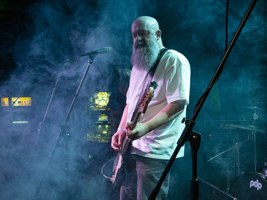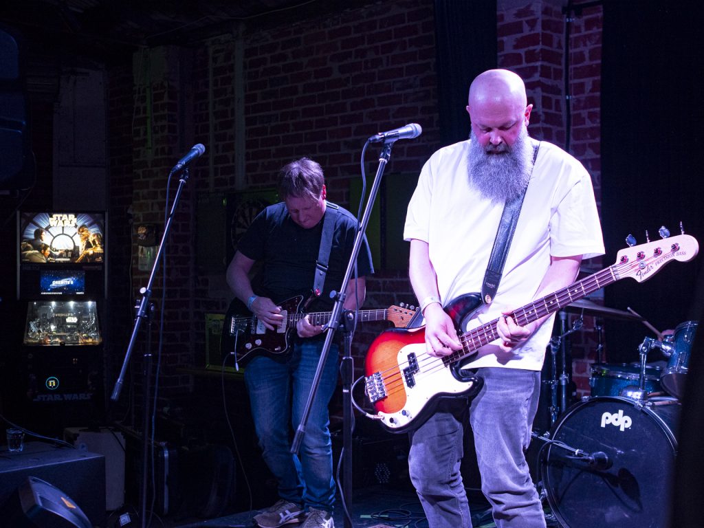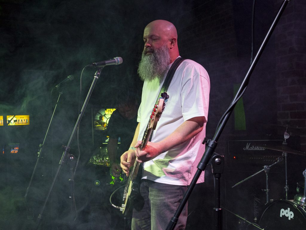 Disco’s relentless bassline blurred menace with groove, like My Disco grappling with an existential crisis: “Scared of talking, don’t look at me!” There is unbottled rage here for sure, but it’s not vitriol; it’s release. By Kettle Boils, they’d descended into swampy, dirty textures—laconic vocals against thrashing drums, sweat dripping—followed up with the new split single Apparent Squares. The comical posturing of the drummer belied the intensity of the mood—the trio dragging themselves from primordial muck, recalling McClusky at their sharpest. Ending the set with a thrown guitar, overlaid by a gently placed bass, Spacerhead’s dichotomy was laid bare: ferocity and discipline.