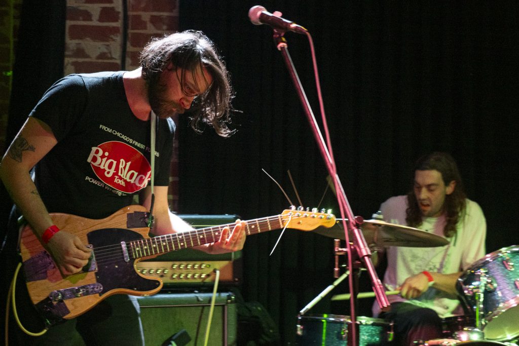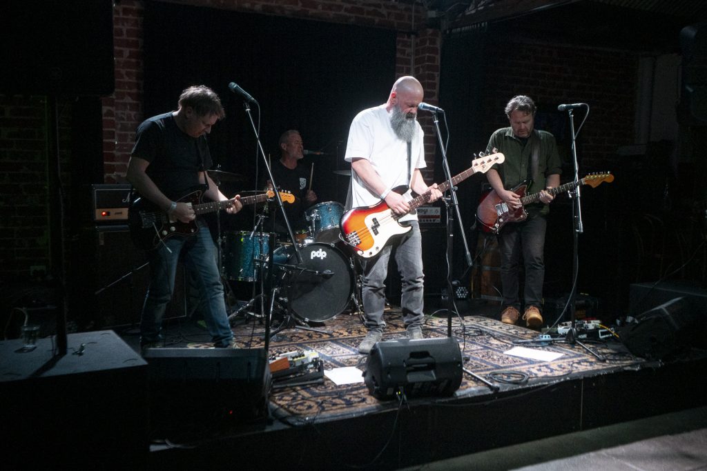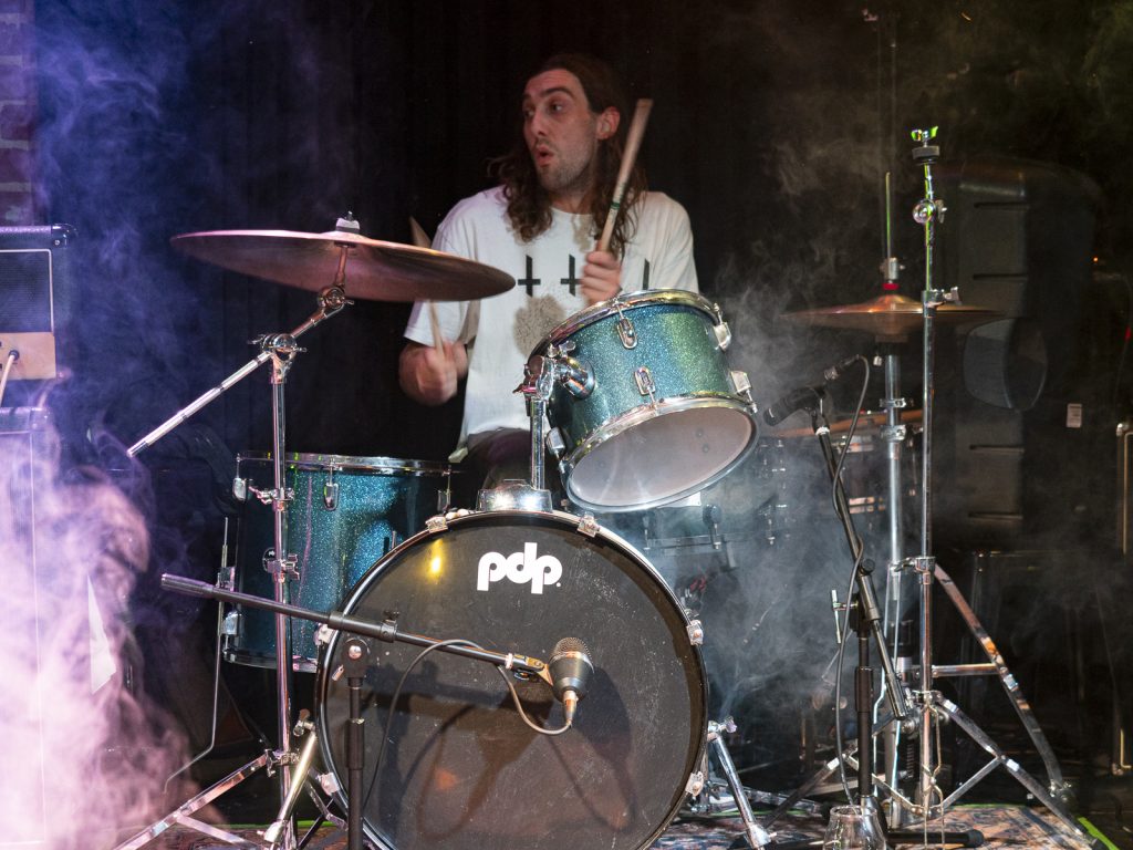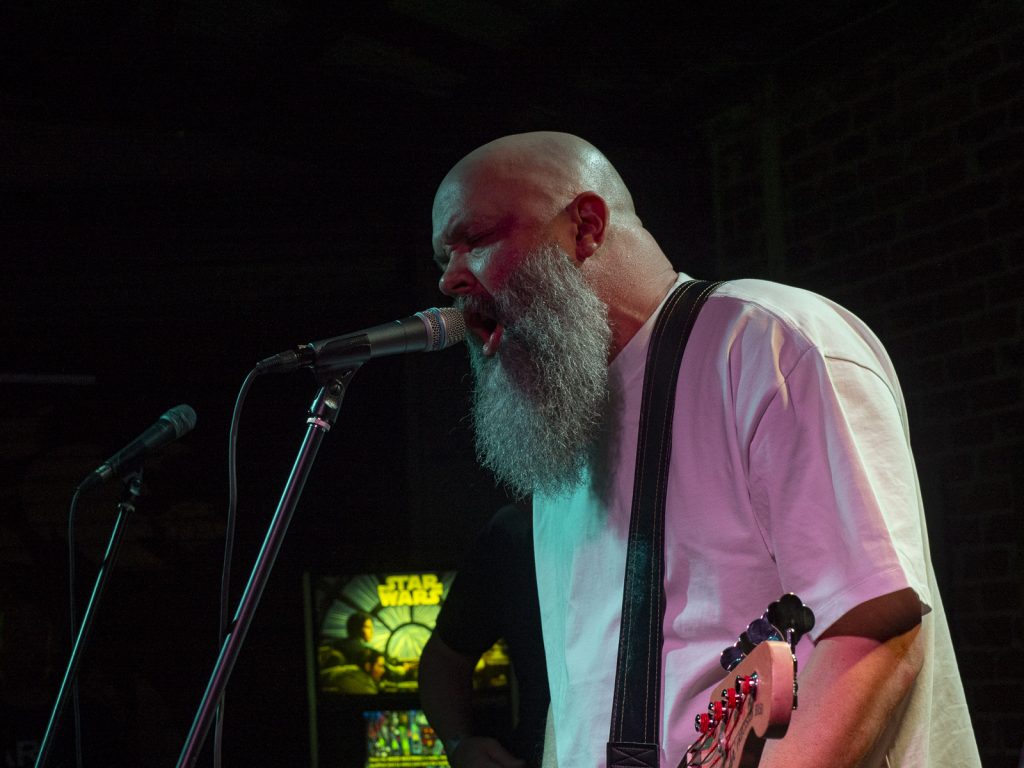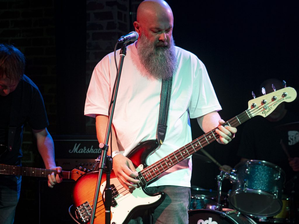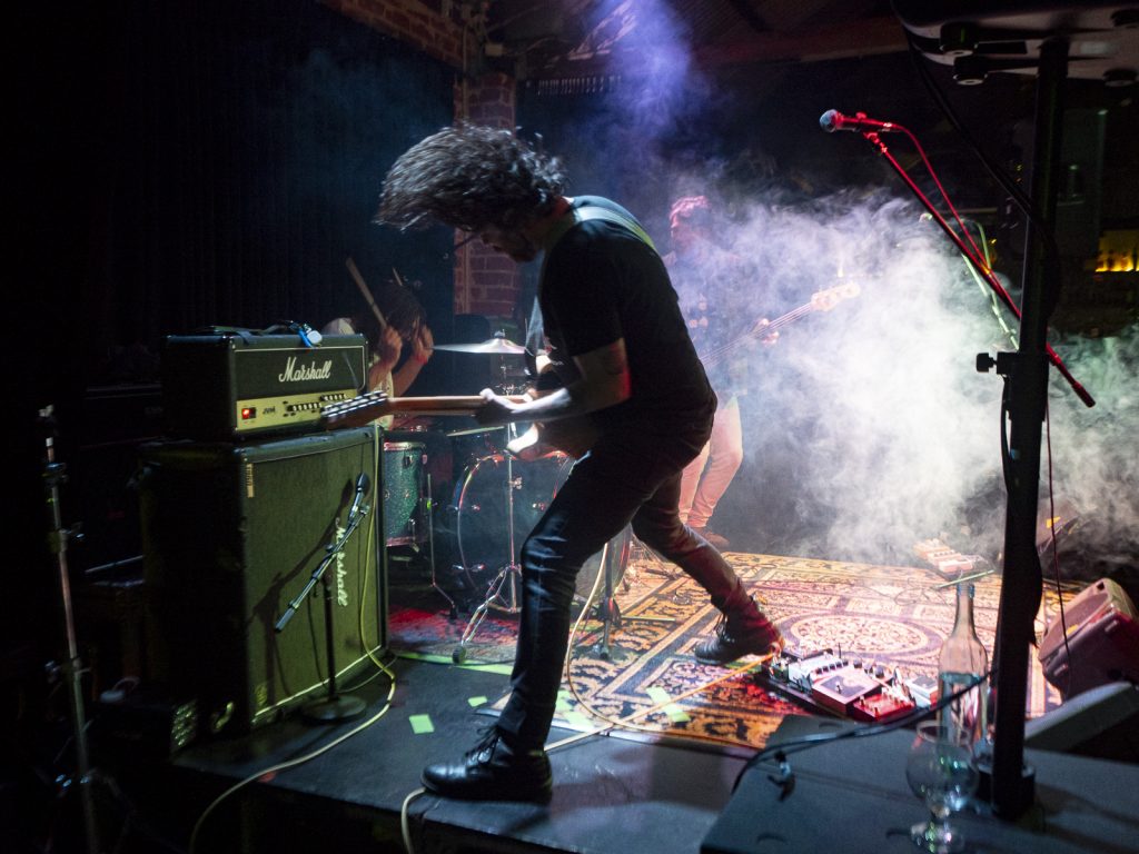 Disco’s relentless bassline blurred menace with groove, like My Disco grappling with an existential crisis: “Scared of talking, don’t look at me!” There is unbottled rage here for sure, but it’s not vitriol; it’s release. By Kettle Boils, they’d descended into swampy, dirty textures—laconic vocals against thrashing drums, sweat dripping—followed up with the new split single Apparent Squares. The comical posturing of the drummer belied the intensity of the mood—the trio dragging themselves from primordial muck, recalling McClusky at their sharpest. Ending the set with a thrown guitar, overlaid by a gently placed bass, Spacerhead’s dichotomy was laid bare: ferocity and discipline.