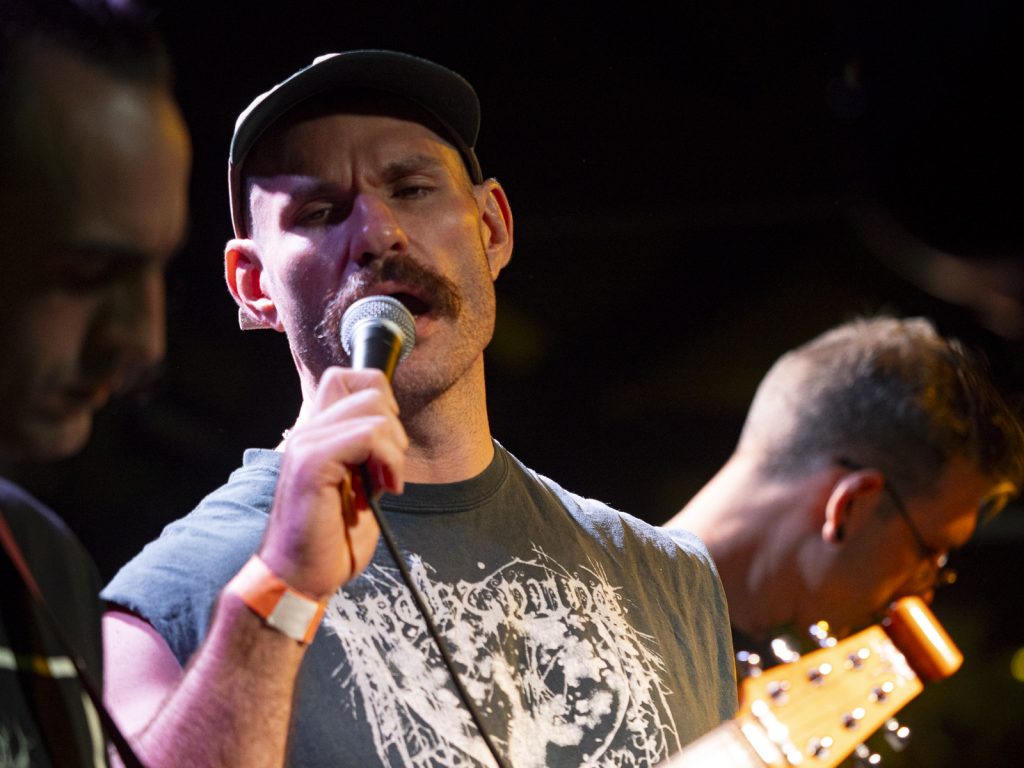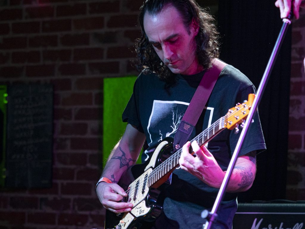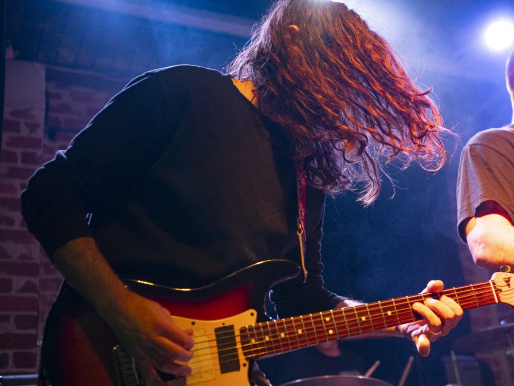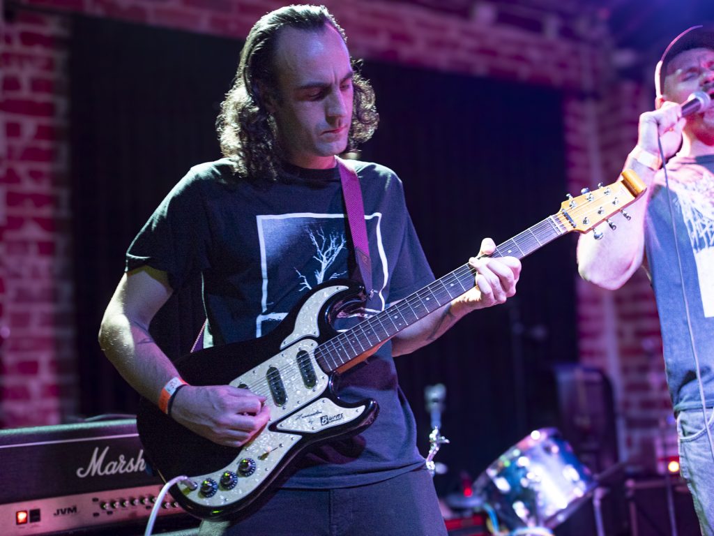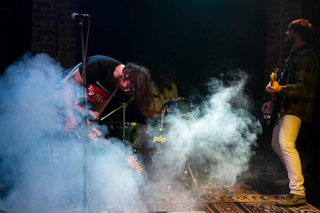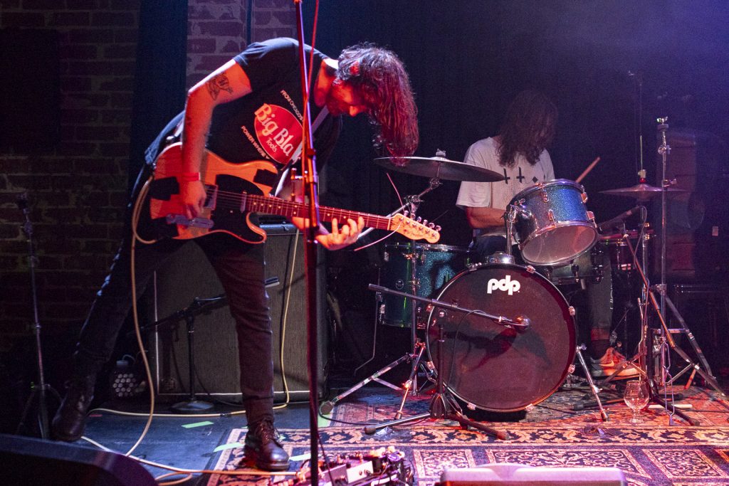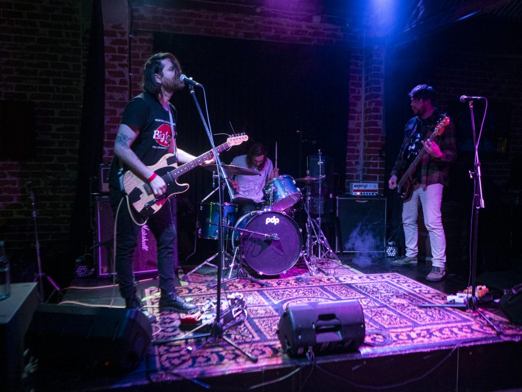 Disco’s relentless bassline blurred menace with groove, like My Disco grappling with an existential crisis: “Scared of talking, don’t look at me!” There is unbottled rage here for sure, but it’s not vitriol; it’s release. By Kettle Boils, they’d descended into swampy, dirty textures—laconic vocals against thrashing drums, sweat dripping—followed up with the new split single Apparent Squares. The comical posturing of the drummer belied the intensity of the mood—the trio dragging themselves from primordial muck, recalling McClusky at their sharpest. Ending the set with a thrown guitar, overlaid by a gently placed bass, Spacerhead’s dichotomy was laid bare: ferocity and discipline.