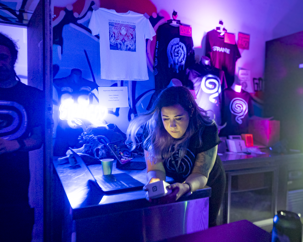 Rain shoved the early hardcore bracket into the basement, and the pressure-cooker acoustics did the rest. In front of the weekend’s thickest crowd, Myriad Sun opened like a drill press: rap-punk whiplash, camera-mixed live visuals, reflective boiler suits and a Warhol-wigged front firing political sparks interlaced with optimism. In the dark of the basement, it felt like we’d stumbled upon an absurdist art project, the abrasive audio assault strangely beckoning the throng in closer. For the third night in a row, Strange trusted the city’s weird to incubate on its own terms.