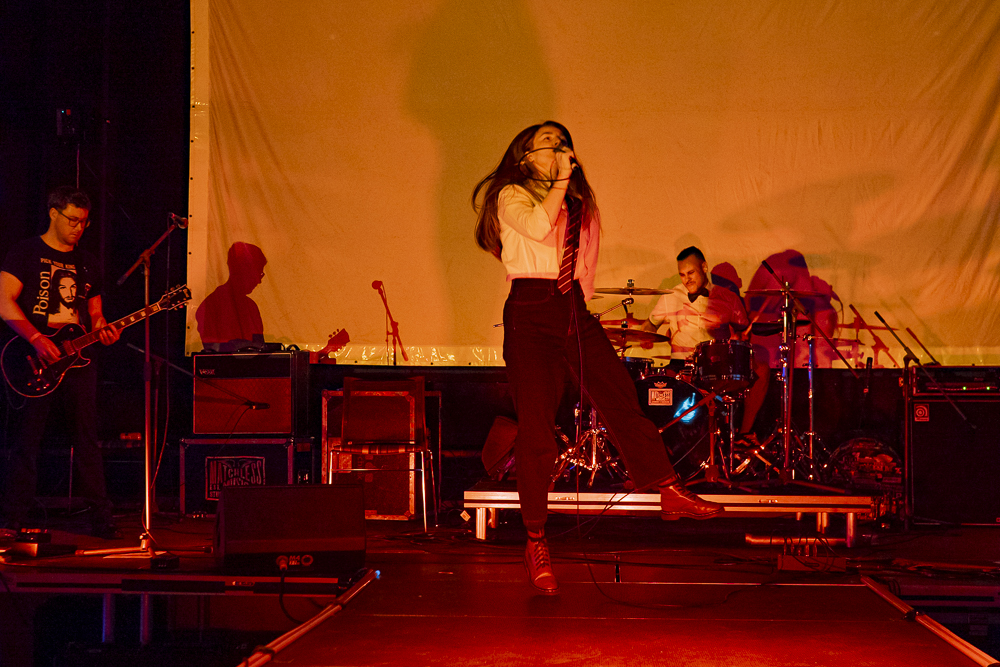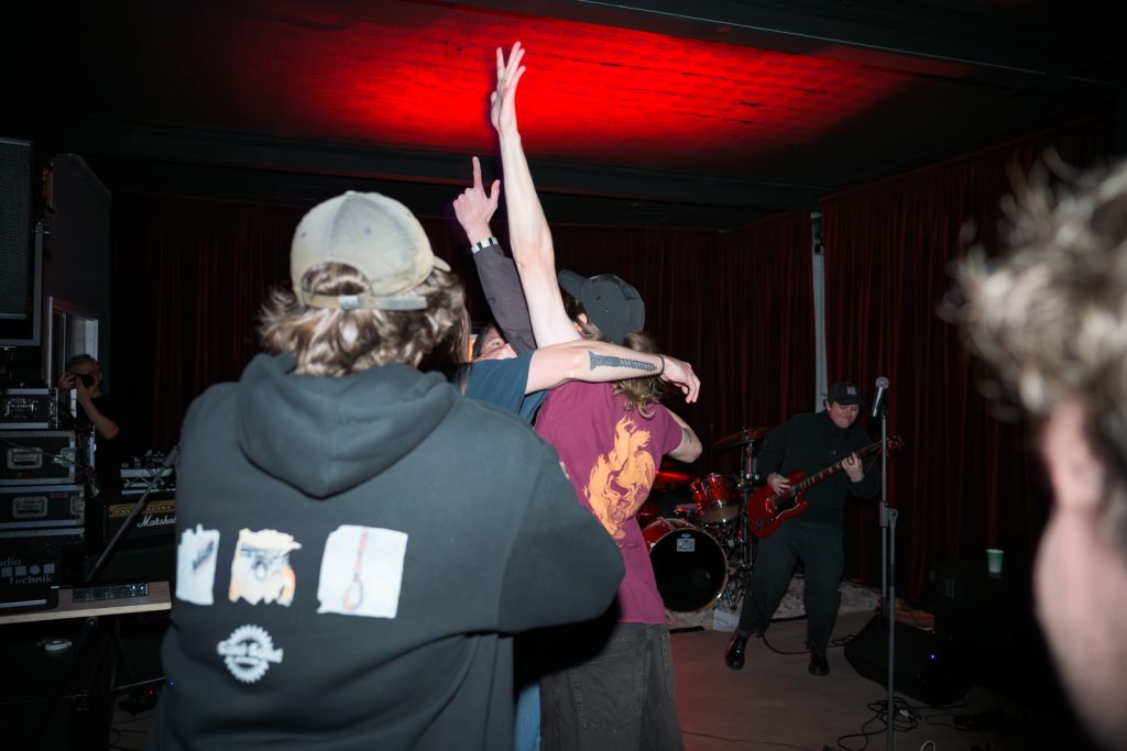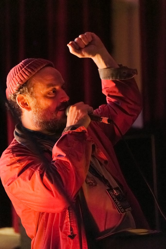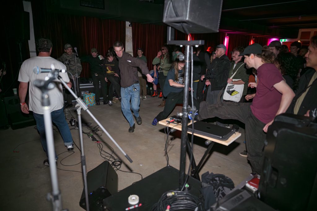 The Chain took the baton with dual drum kits in locked step, the crowd yelling for “lights on” just to watch the engine we could only feel. Keeping the room dim may have been the more punk choice; the claustrophobia amplified tension and impact. A mid-set shout-out to Strange’s DIY backbone—unsubsidised and stubborn—underscored the festival’s core ethos: building quality arts experiences without being beholden to larger agendas. Raw and unpolished doesn’t have to mean lesser calibre.