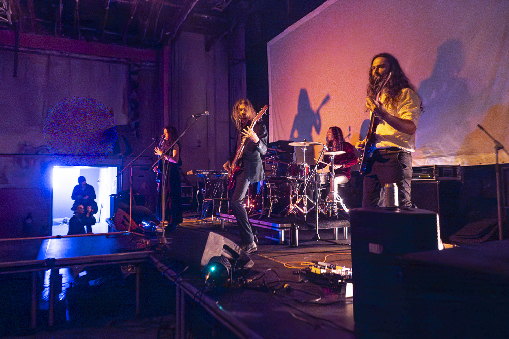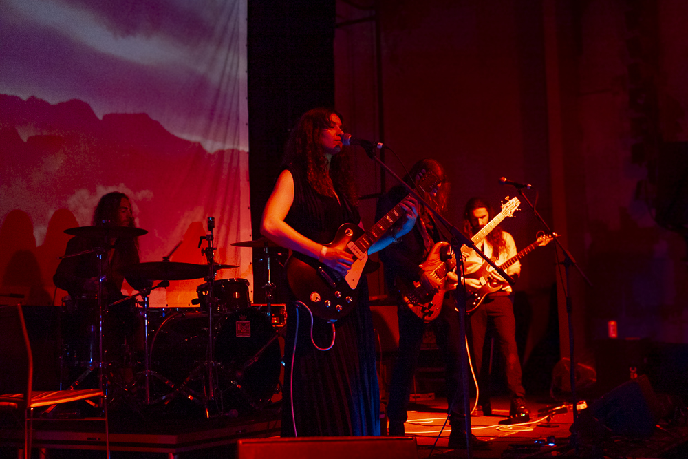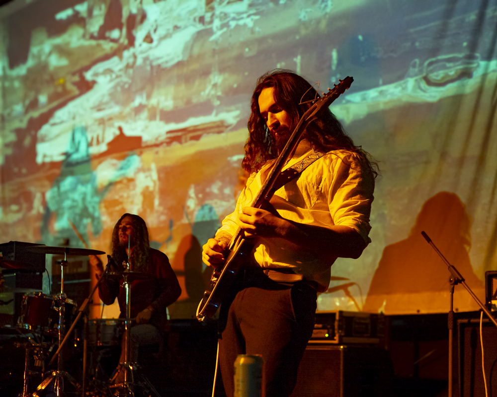 Guild followed with a triple-guitar-plus-synth chassis that churned sludgy desert rock into classic-metal melodicism. Fronted by a vocalist with a satisfyingly ugly growl, they were a well-oiled machine with enough rust and grime to stay interesting—another snug fit for Strange’s recontextualise-it-and-see brief. The no-frills visuals—warped echoes of on-stage movement that would be used for the rest of the night—worked like a funhouse mirror, incidentally enlarging the sound.